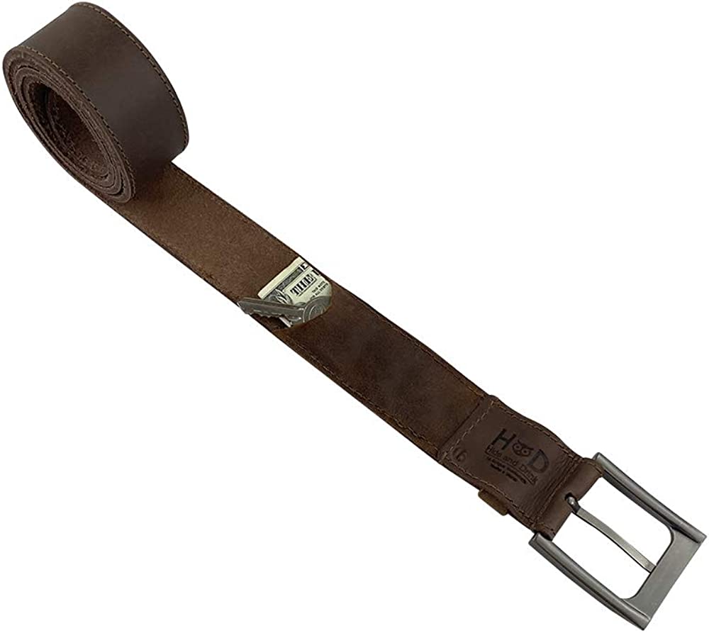 • HIDDEN SECURE POCKET IN THE SEAMS: Hide & Drink’s Thick Leather Belt boasts a sneaky little pocket that is sewn into the reverse side of the belt. The small compartment is big enough to hide away dollar bills, a key, and other small objects that you want to keep secure from potential thieves, but small enough for it not to be too bulky, uncomfortable or obvious. Makes for a great belt for traveling with, or even serves as a place to sneak fun things past festival security.