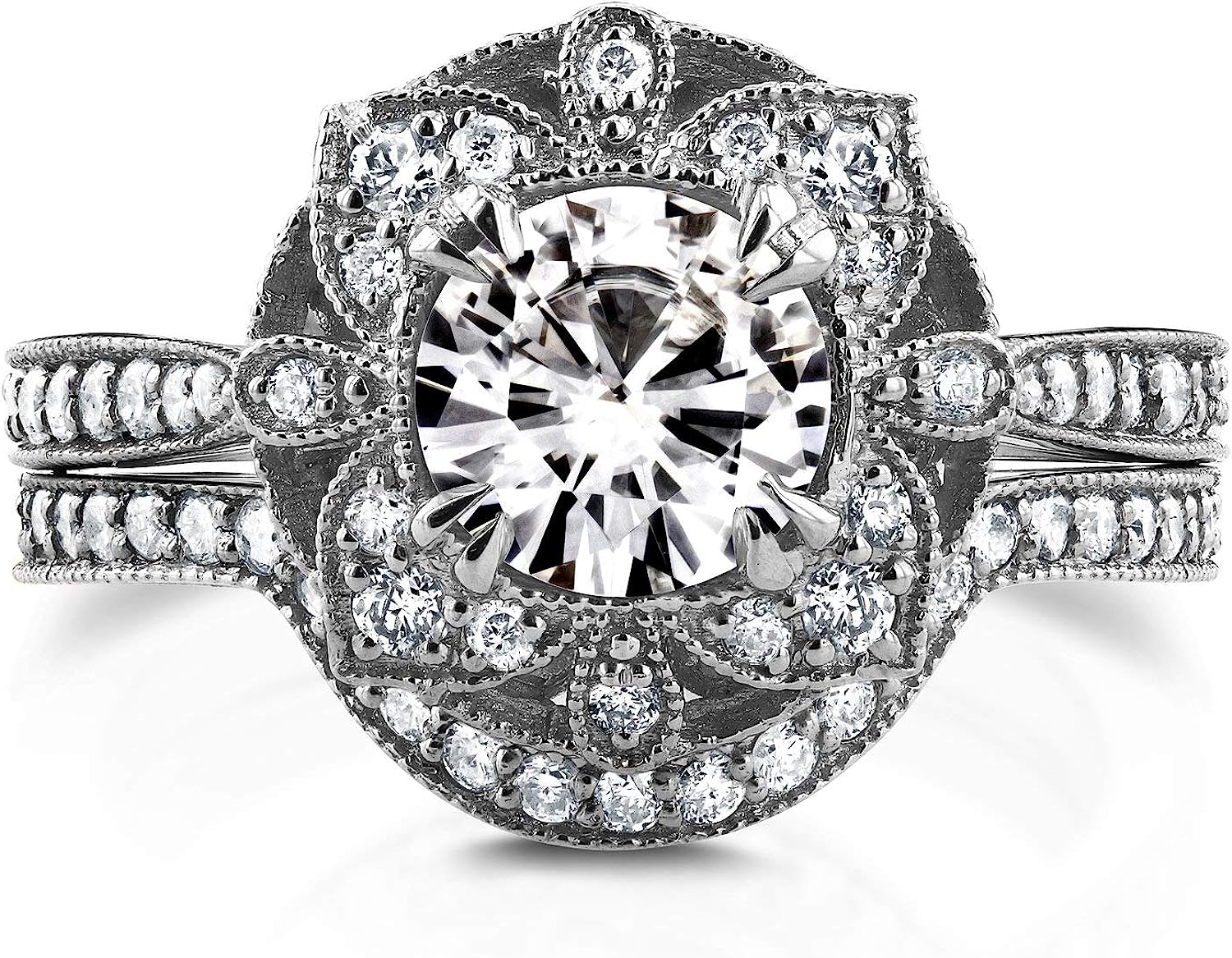 Kobelli Antique Style Floral Diamond Bridal Set 1 1/2 CTW in 14k White Gold