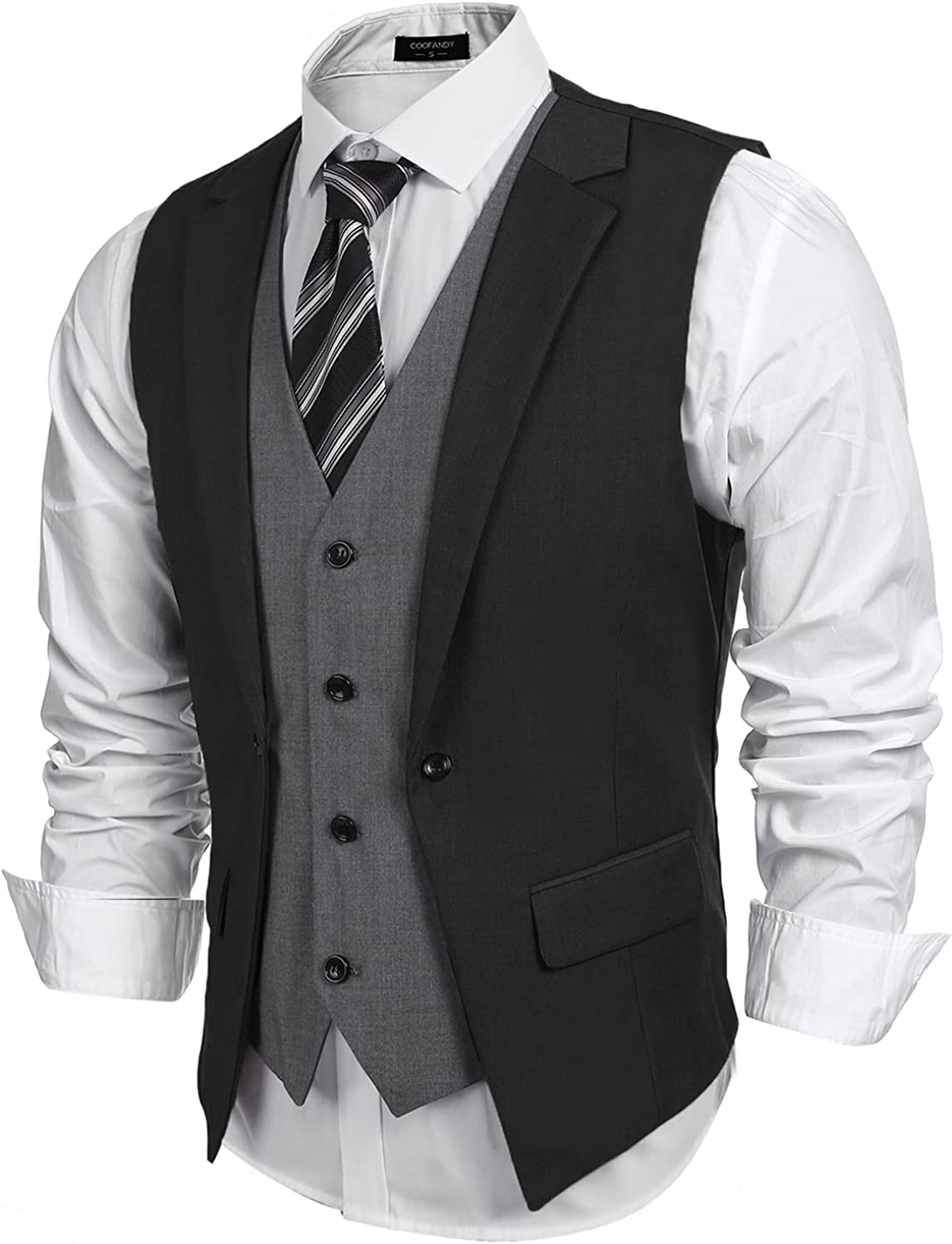 - FORMAL OR DAILY WEAR - Men's V-neck sleeveless layered suit vest can match with your necktie, bow-tie, leather shoes shirt, jacket, suit or tuxedo for a handsome and elegant look in formal occasions like Wedding Banquet, Halloween Party, Company Party or just match with slacks or jeans for a great look in daily life.