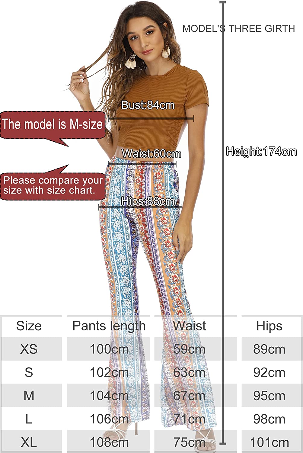 WSPLYSPJY Women's Print Stretch Bell Bottom Flare Palazzo Pants Trousers
