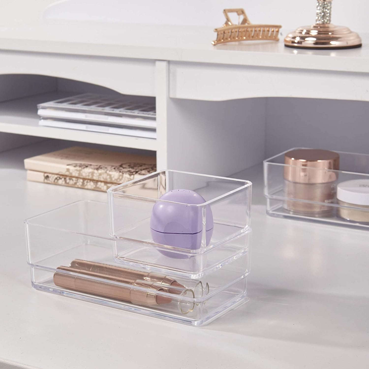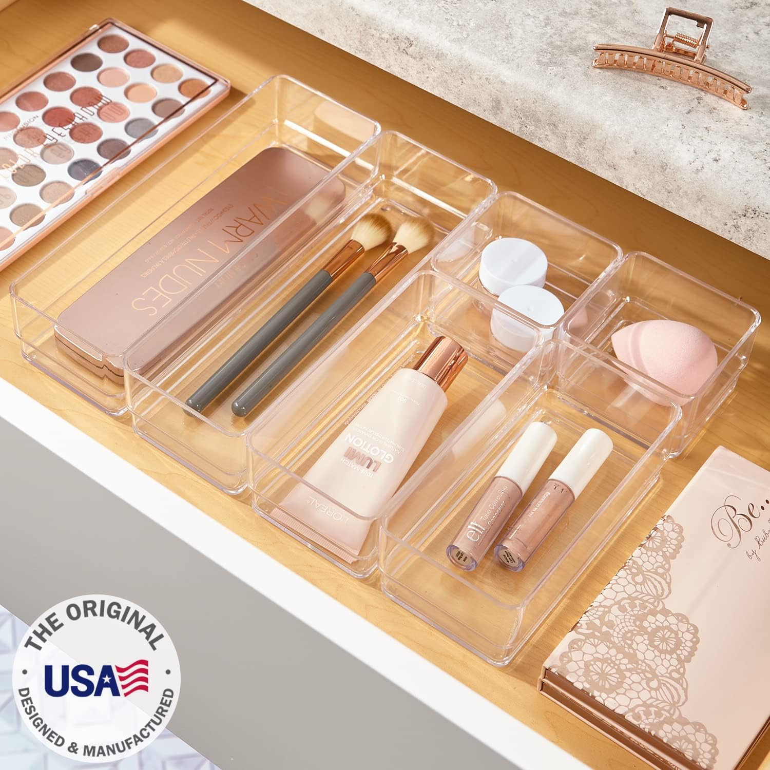 Time to get your drawers organized! With many applications and configurations, these individual organizers can fit side by side to sort daily essentials in your drawers! Each container easily stacks for multiple layers of storage. Great for deep drawers! Purchase additional sizes to customize your organizational needs. Create modular sets to organize drawers in your entire house. Clear, break-resistant plastic fits in any décor. No assembly required. Cleans easily with mild soap and warm water. Made in USA.