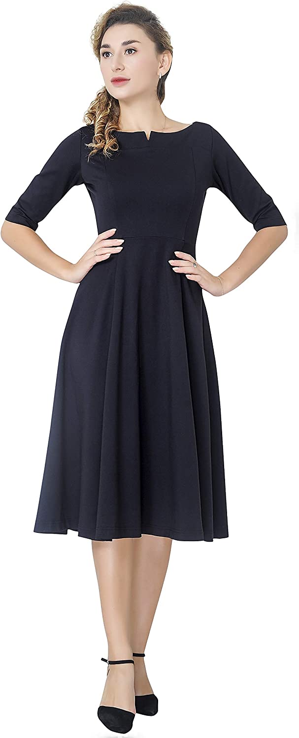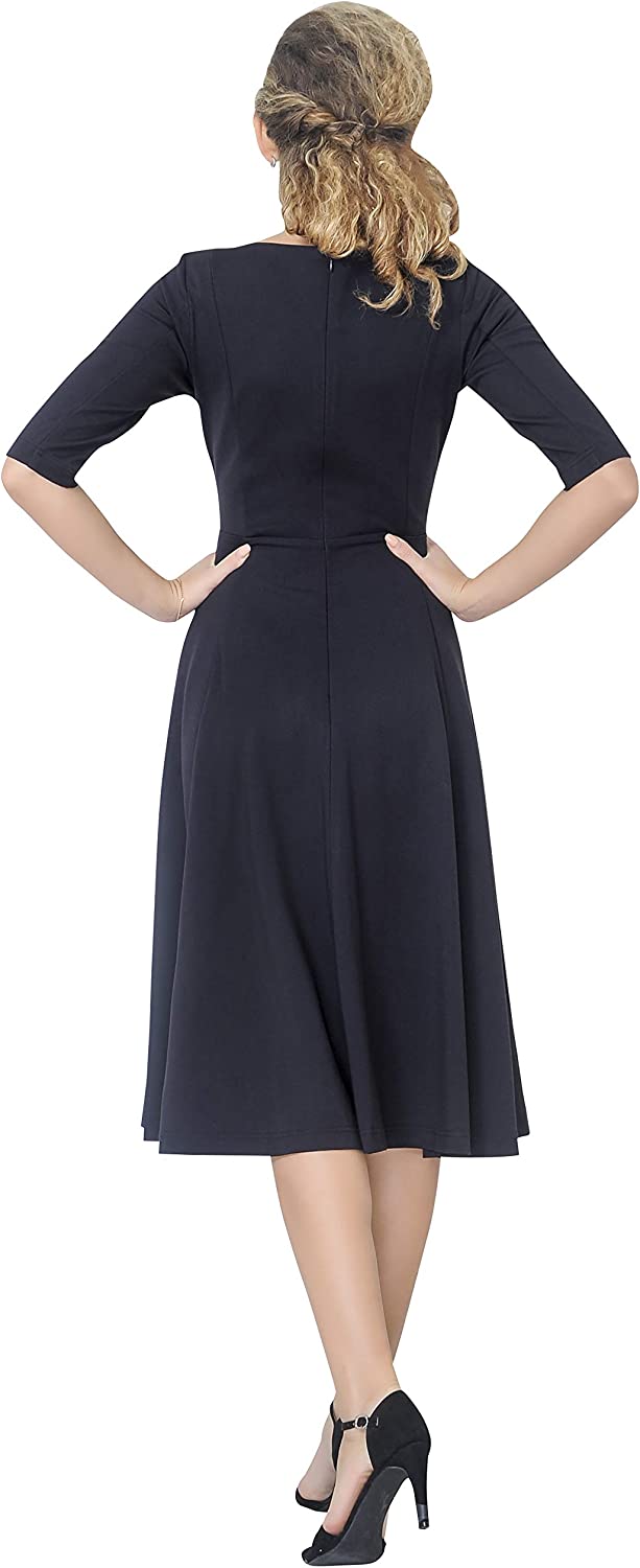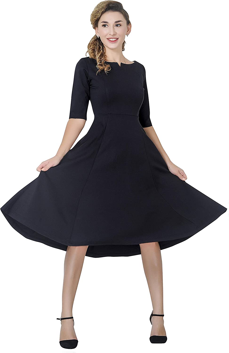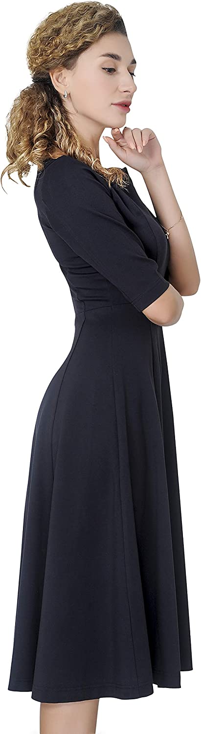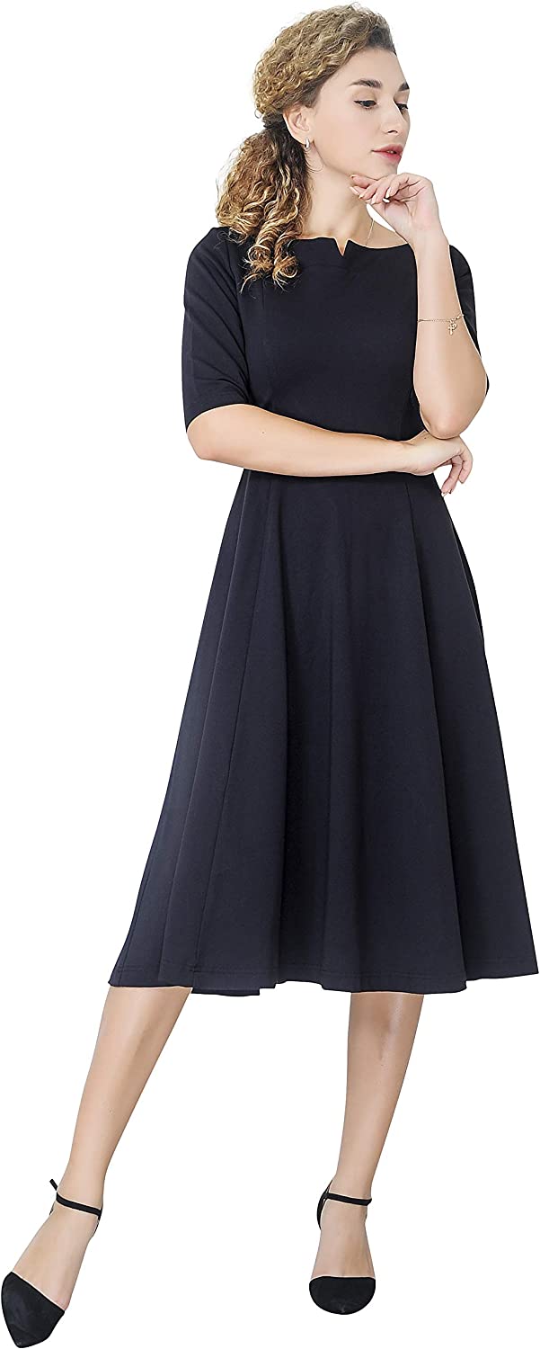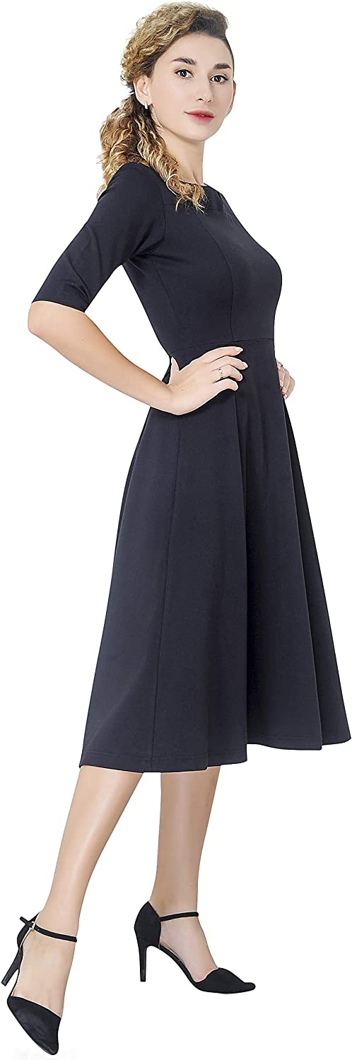 Marycrafts Women's Fit Flare Tea Midi Dress for Office Business Work