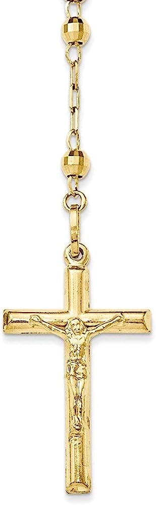 PREMIUM QUALITY - 14k Yellow Gold Diamond cut Y Virgin Mary Beaded Rosary Cross Pendant Necklace for Women Elegantly Crafted in Highest Quality for Luxurious Shine and Feel