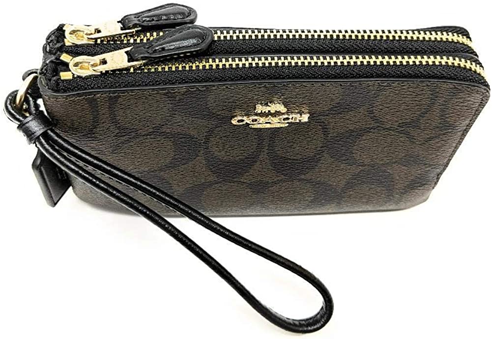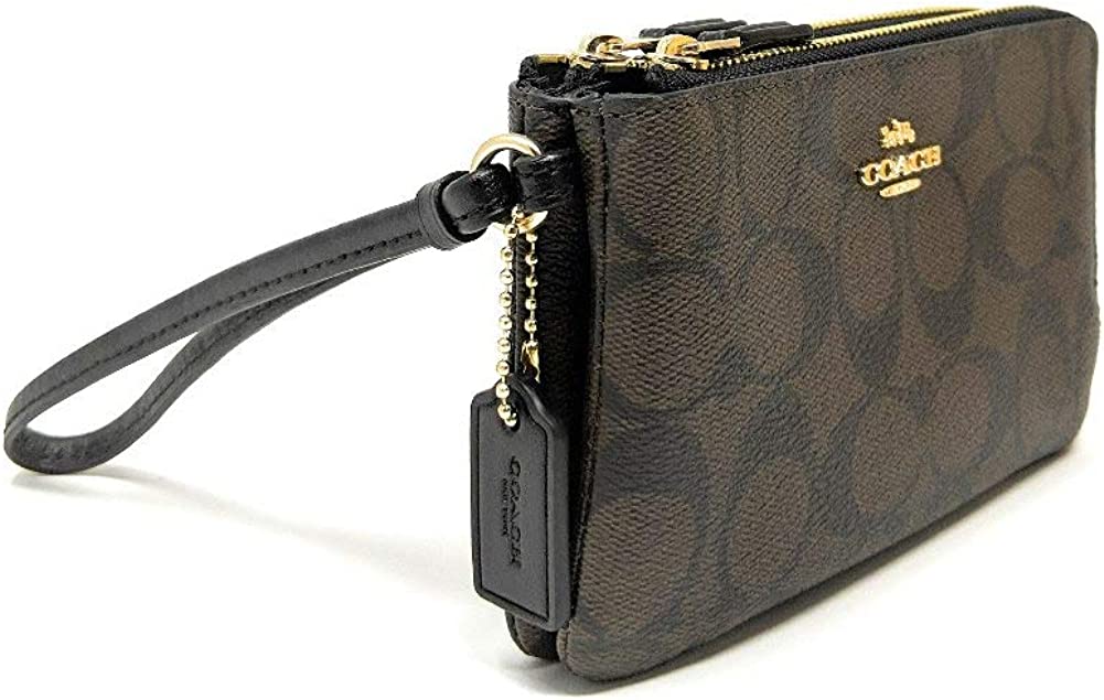 Our Signature canvas Double Corner Zip wristlet is a slender design that holds cash and cards on one side and a phone on the other.