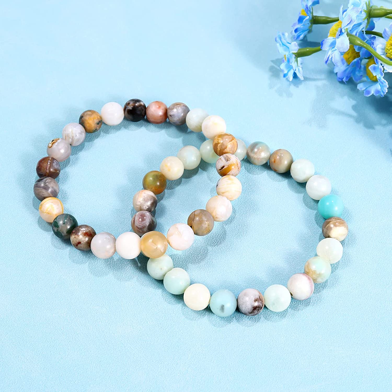Bivei Natural Gem Semi Precious Reiki Healing Crystals Handmade 8mm Round Beads Stretch Bracelet