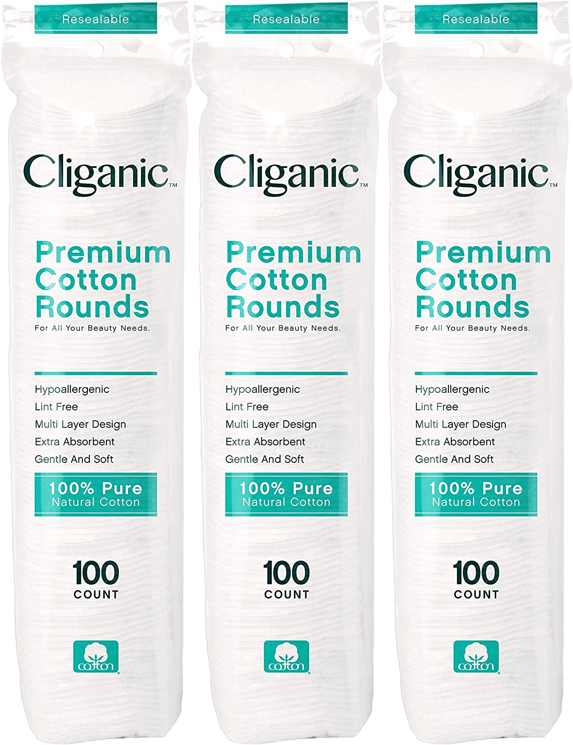 Cliganic Premium Cotton Rounds for Face (300 Count) - Makeup Remover Pads, Hypoallergenic, Lint-Free | 100% Pure Cotton