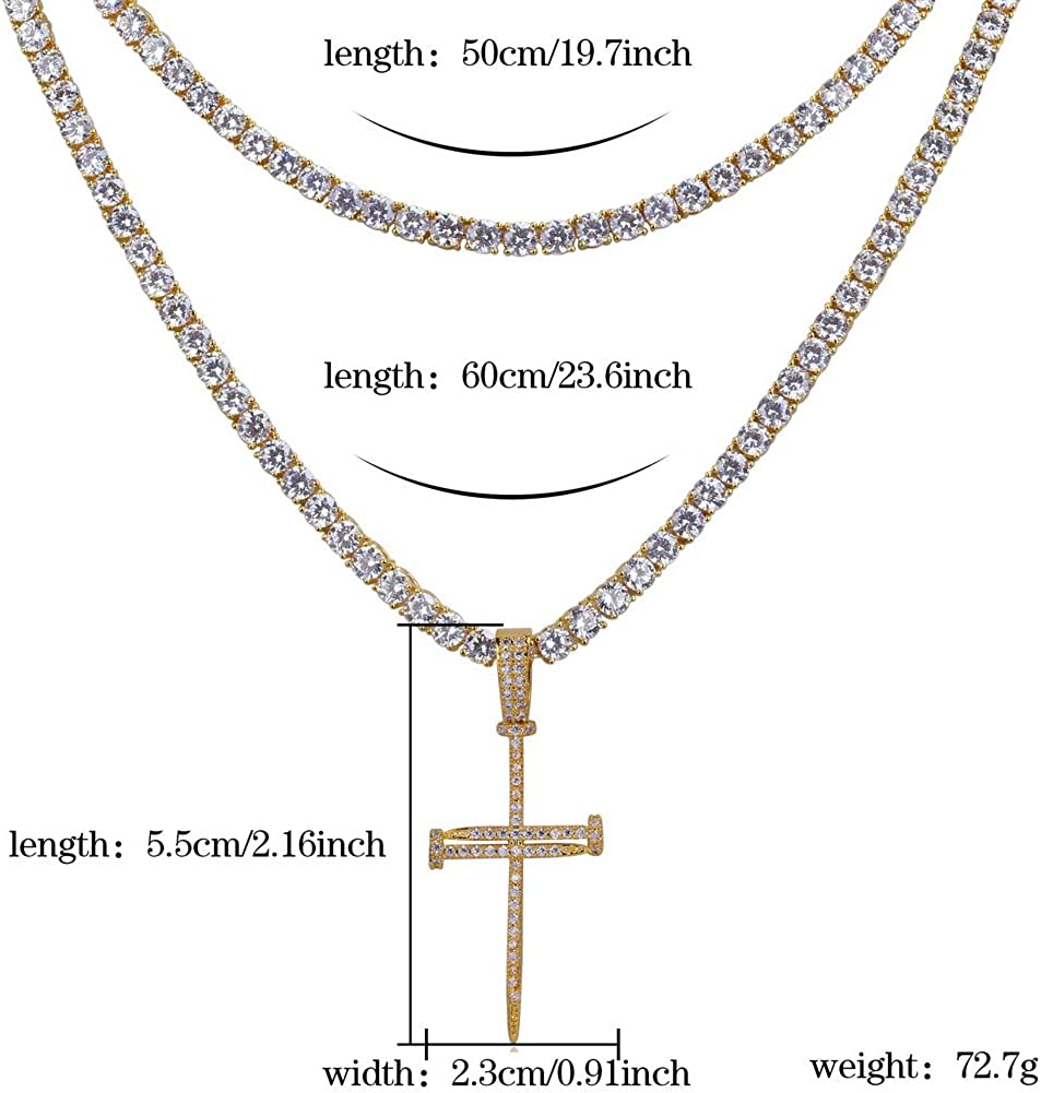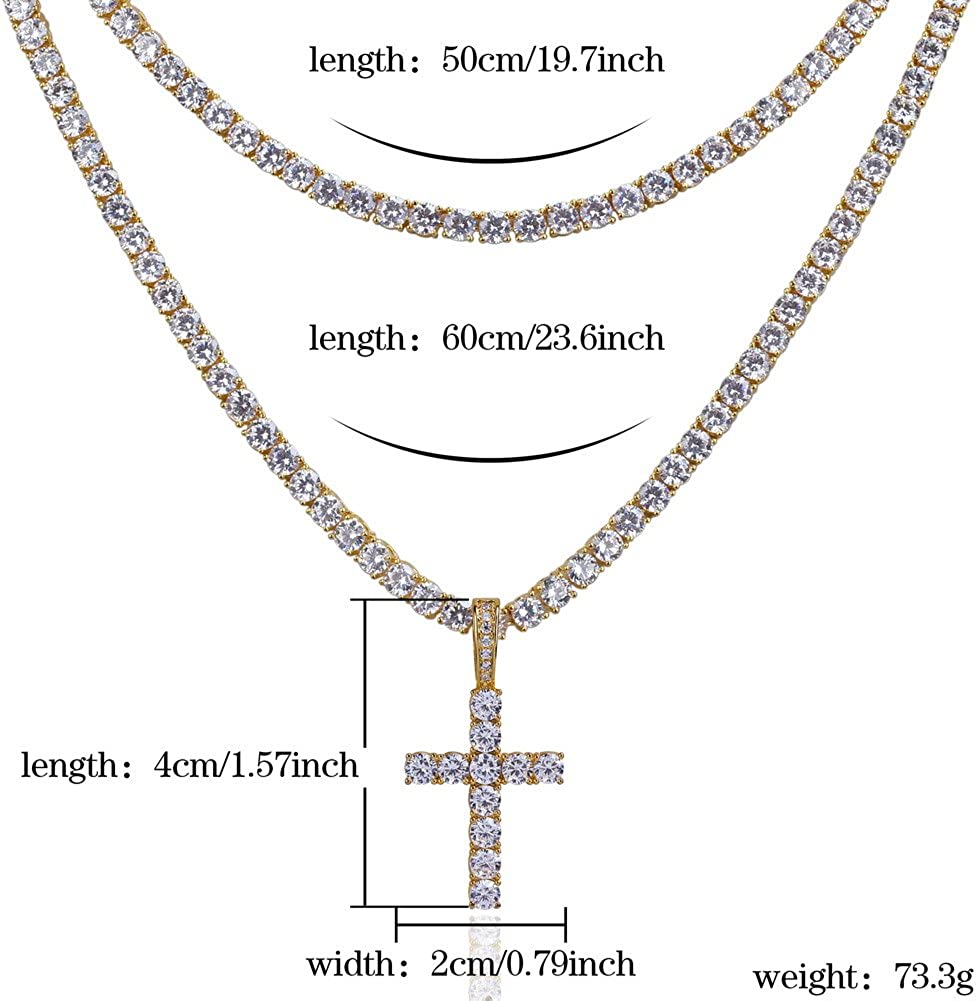 • MULTIPLY OCCASION—Such lab simulated diamond CZ cross pendant with the tennis chains are perfect for hip hop, rappers, party, band, photo and video shoots, keep you stand out from the crowd. Daily wear or wear at party,date,ceremony,anniversary,festival,special days etc.As a gift for Black Friday,Valentine's day,Father's day,Birthday,Graduation,Thanksgiving,Christmas,Passion Sunday etc.