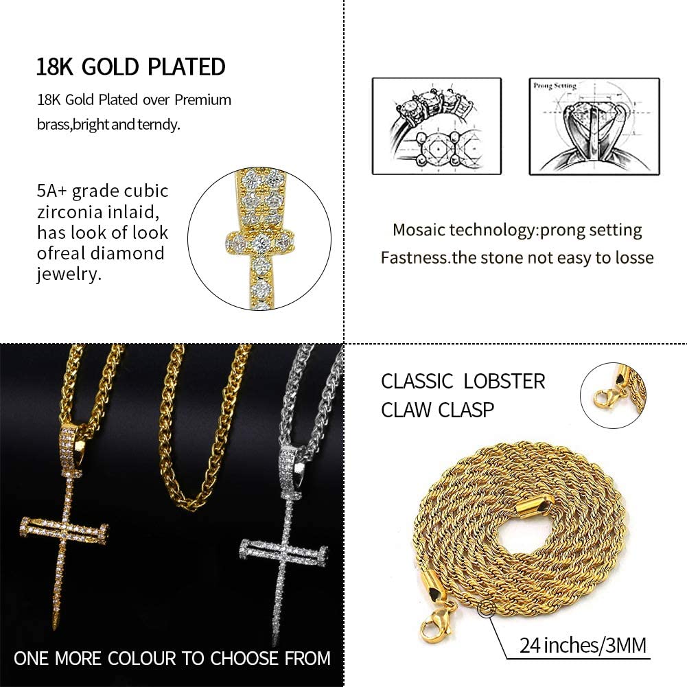 • Our gold cross necklace for men are gorgerous quality. It is not easy to fade. But if you neglect it ,it may start to fade. Every CZ Stones which are totally clean and transparent are set with prong setting that can make products more bling and assures no stone falling, similar sparkly with real diamonds. High Polished can ensure pendant reflects plenty of light to create that bling-bling effect to ensure that it glistens.