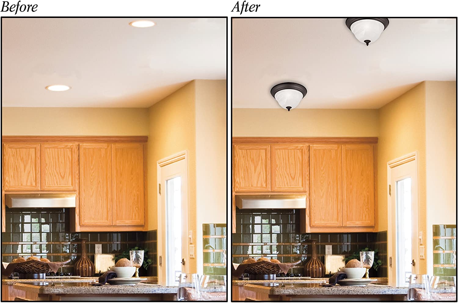 This unique patent-pending Westinghouse Recessed Light Converter offers an easy way to transform your existing recessed lighting into a pendant or light fixture with no major remodeling. Let your creativity inspire you to update your home lighting with this quick and easy upgrade. Hang any pendant or other light fixture of 50 pounds or less where recessed lighting is currently used in your home.The Recessed Light Converter adjusts to any can size between 4-inch and 6-inch, there are no visible screws or hardware and the decorative medallion can be painted to match any decor. This converter works with existing recessed cans that use medium base PAR16, R16, A19, R20, PAR20, BR25, BR30, R30, PAR30, BR38, PAR38, BR40 or R40 light bulbs and is suitable for damp locations.Perfect for kitchens, family rooms or anywhere recessed lighting is used. It includes a versatile white decorative medallion, adjustable bar, socket adapter and mounting hardware for convenient installation.This Westinghouse Recessed Light Converter is CETL listed for safety.Product reference number 01011.