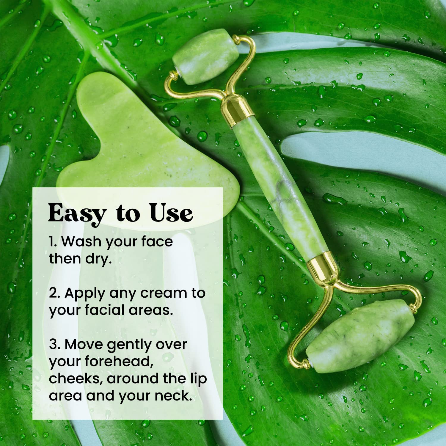 ROSELYNBOUTIQUE Gua Sha & Face Roller for Face - Premium Certified Jade Natural Healing Crystal Self Care Gifts for Women - Facial Skin Care Tools Muscle Relaxing Relieve Wrinkles (Green)