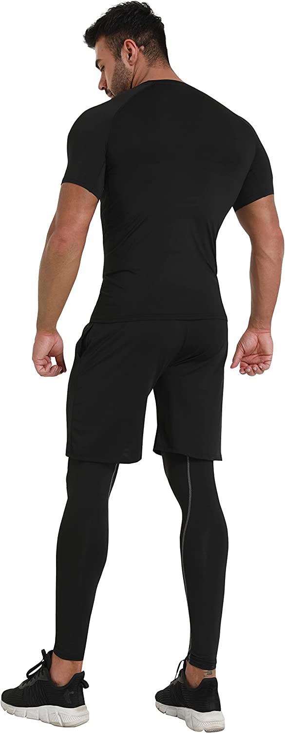 5 IN 1 SET---Compression outwear+Long sleeve+short sleeve+ running shorts + compression leggings,ultra-soft & smooth for extreme comfort with very little weight.Set sales, not only discounts, but also eliminates the trouble of matching.