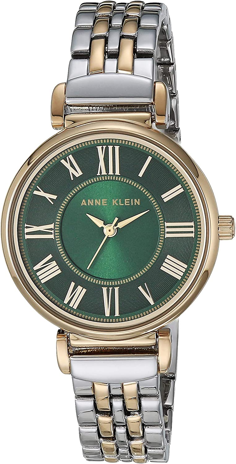 Mineral crystal lens; Green dial with rose gold-tone hands and Roman numerals; Printed outer and inner minute tracks