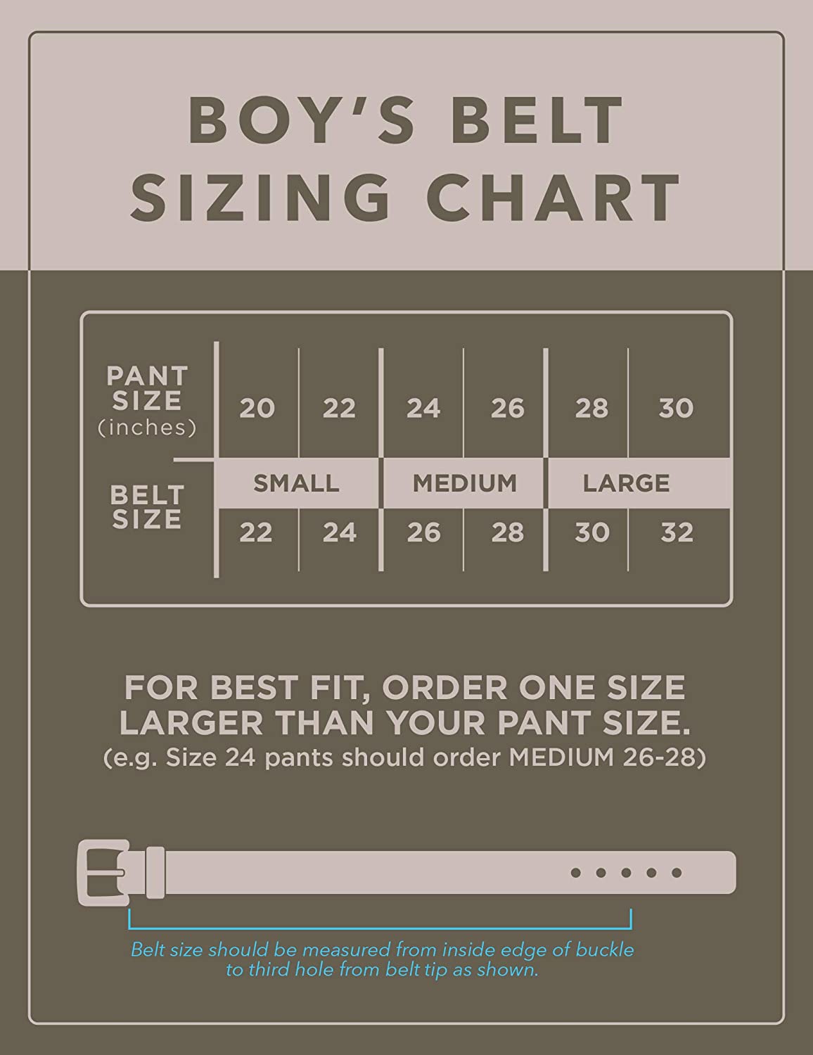 • Boys reversible leather belt made with 100 percent genuine leather for a soft smooth feel. Sizing: small (22-24 ), Medium (26-28 ), large (30-32 )
