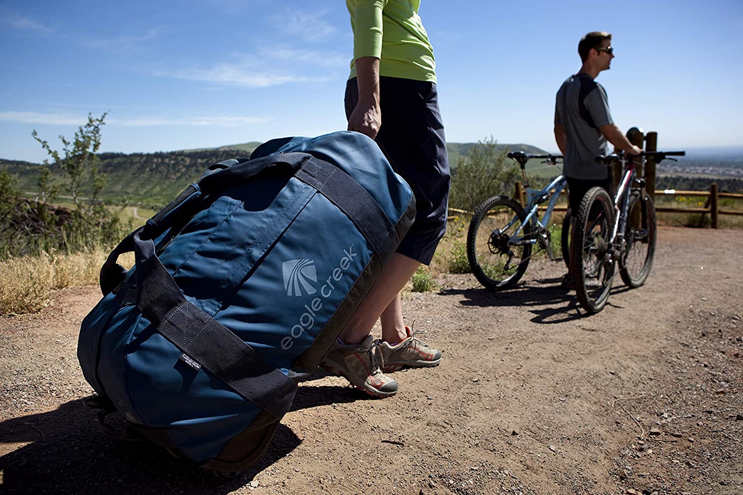 Eagle Creek No Matter What Rolling X-Large Duffel Bag 128L - This large 104L wheeled duffel is constructed with water-resistant Bi-Tech fabric to conquer the road ahead. Built for travel, it's got tons of haul handles, lockable zippers, and a stuff pouch for compressed storage when the journey is through. Designed for rugged landscapes and meeting your ever-changing, versatile travel needs. Bag Dimensions: Dimensions: 36 x 15 x 14 in | 4 lbs 3 oz