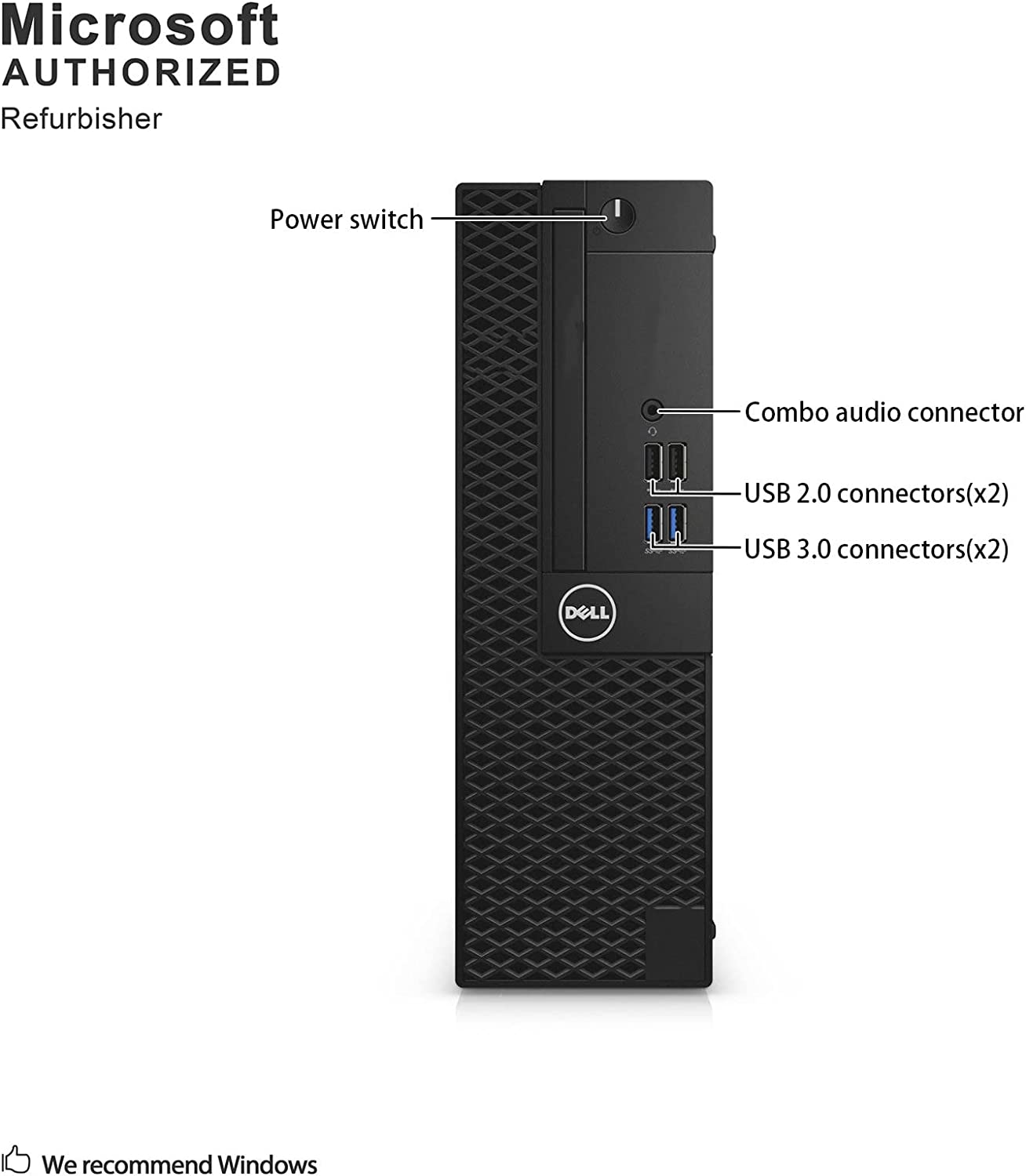 ProcessorIntel Core 7th Generation i5-7500 Processor (Quad Core, up to 3.80 GHz, 6M Cache, 65W)Operating SystemWindows 10 ProMemory8GB DDR4Hard Drive256GB 2.5Inch SATA Class 20 Solid State DriveGraphics CardIntel Integrated GraphicsOptical DriveNoneWirelessNo Wireless CardKeyboard and MouseIncludedPorts & Slots1 x Power button1 x Universal Audio Jack4 x USB 2.0 ports4 x USB 3.1 Gen 1 ports1 x HDMI 1.41 x DisplayPort 1.21 x 1/8" (3.5 mm) Headphone/Microphone1 x 1/8" (3.5 mm) Line-Out1 x Integrated Speaker1 x RJ-45Dimensions & Weight3.7 x 11.4 x 11.5" / 9.4 x 29.0 x 29.2 cm11.31 lb / 5.13 kg (Minimum weight)