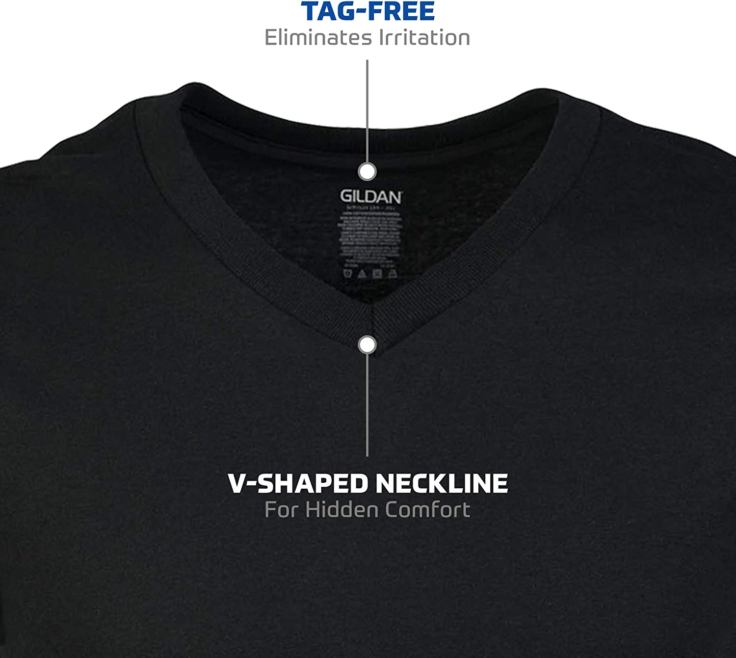 Gildan v-neck t-shirts are the ultimate in comfort. Cool Spire moisture wicking keep you cool and dry while the soft touch yarn and tag-free neck feels great all day long. These tees are built to last with durable tubular collar design and covered shoulder seams. The Gildan t-shirt will soon be your favorite...if it isn't already.