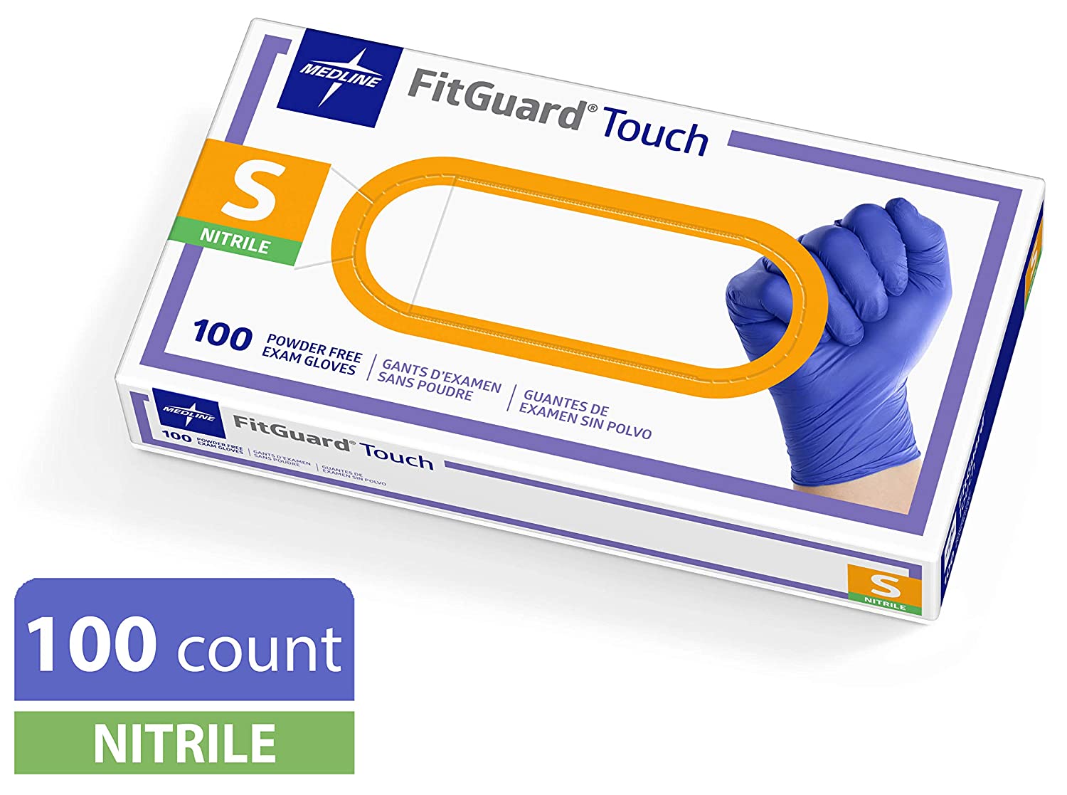 Medline FitGuard Touch Nitrile Exam Gloves, Disposable, Powder-Free, Cobalt Blue, Medium, Box of 100
