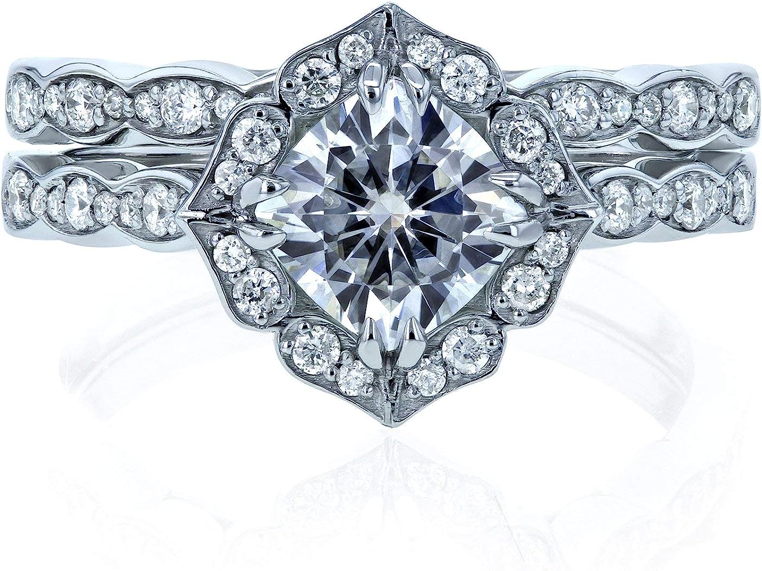 Kobelli Forever One Moissanite Vintage Style Floral Bridal Rings Set 1 1/2 CTW 14k White Gold (DEF/VS, GH/I)