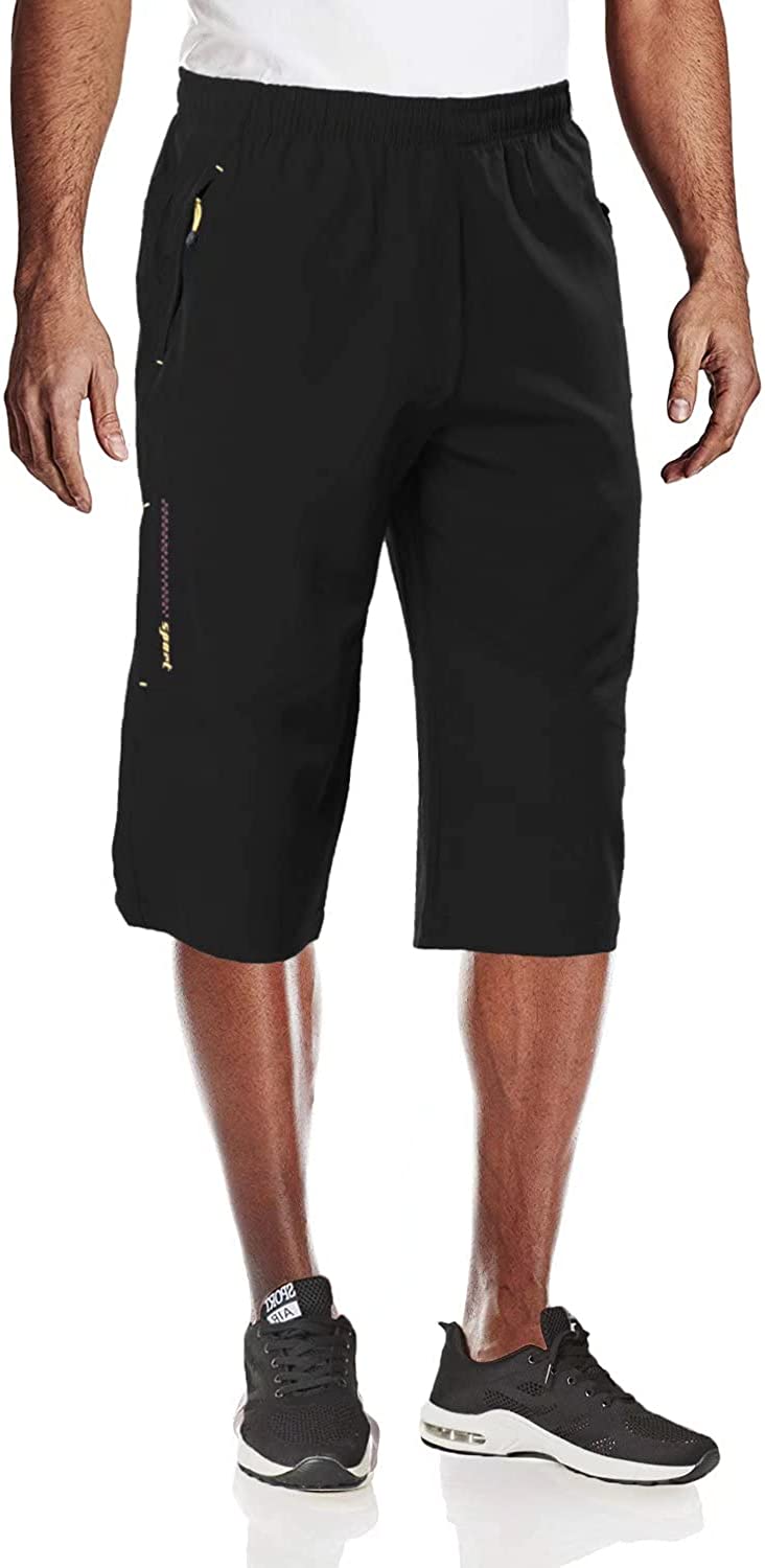 MAGCOMSEN Men's Quick Dry 3/4 Capri Pants Zipper Pockets Hiking Running Long Shorts
