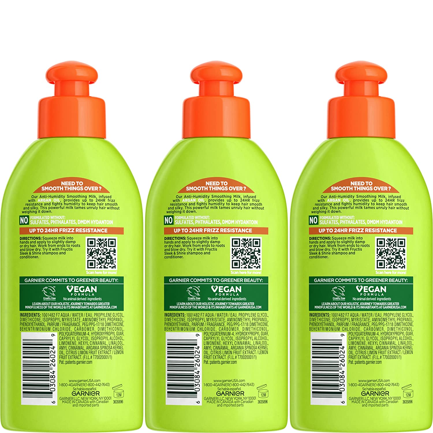 Get 24 hour sleek! Garner Fructose Style Anti-Humidity Smoothing Milk tames frizz and fights humidity to keep hair smooth and silky. HOW DOES IT WORK? This powerful paraben-free smoothing milk, with Argon Oil from Morocco, fights humidity and combats frizz to smooth and tame unruly hair without weighing it down. 24 hour frizz resistance and smooth hair! GET INSPIRED! Get a "Smooth Operator" look: Apply on slightly damp hair from ends to roots. Blow-dry with a round brush for a sleek, smooth look. Or apply anytime, anywhere to dry hair to tame frizz and flyaway. For more looks, tips and fun visit our Style Hub.