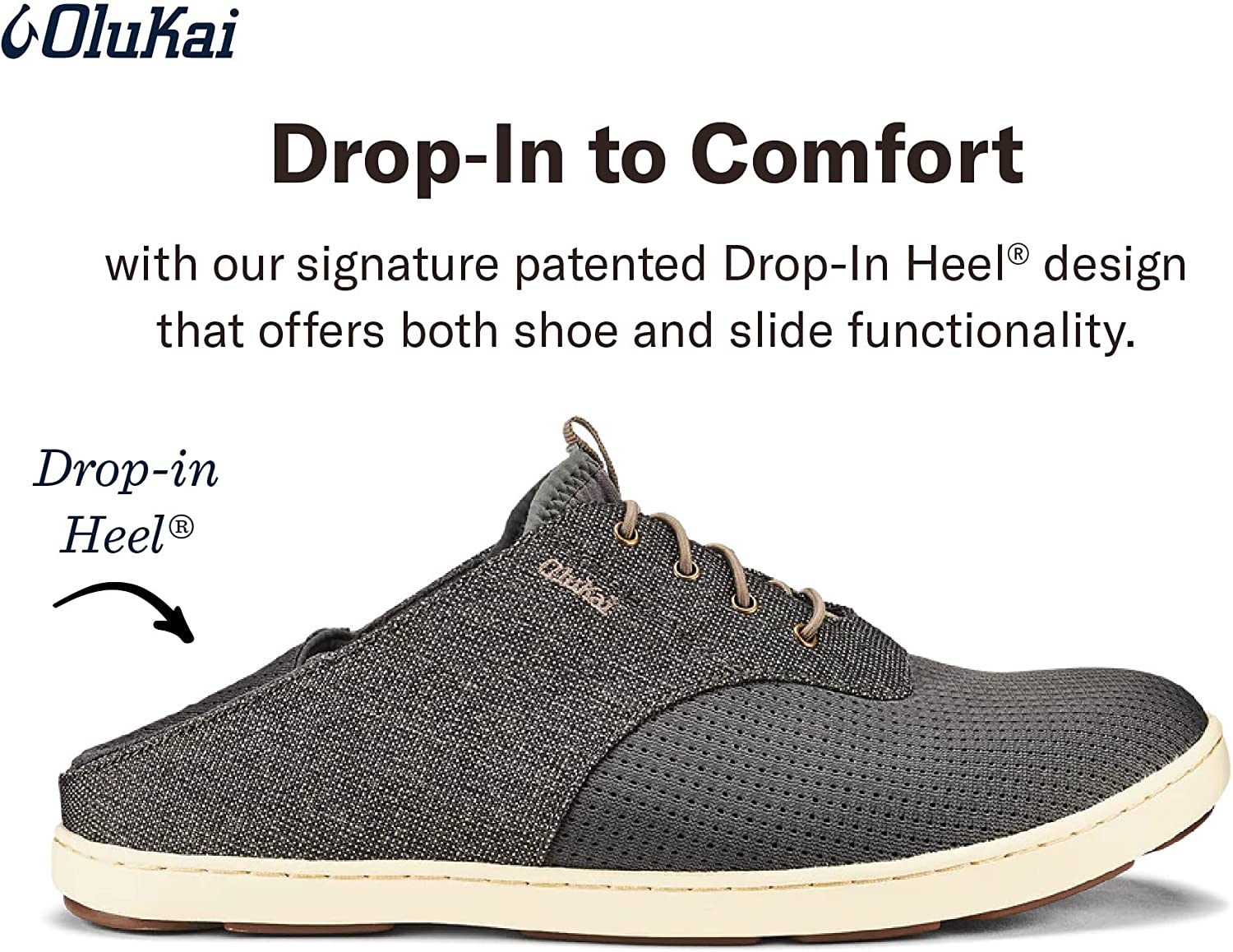 OLUKAI Nohea Moku Men's Shoes, All Day Sneakers, No Tie Laces & Stretch Construction, Breathable Mesh & All Weather Rubber Soles