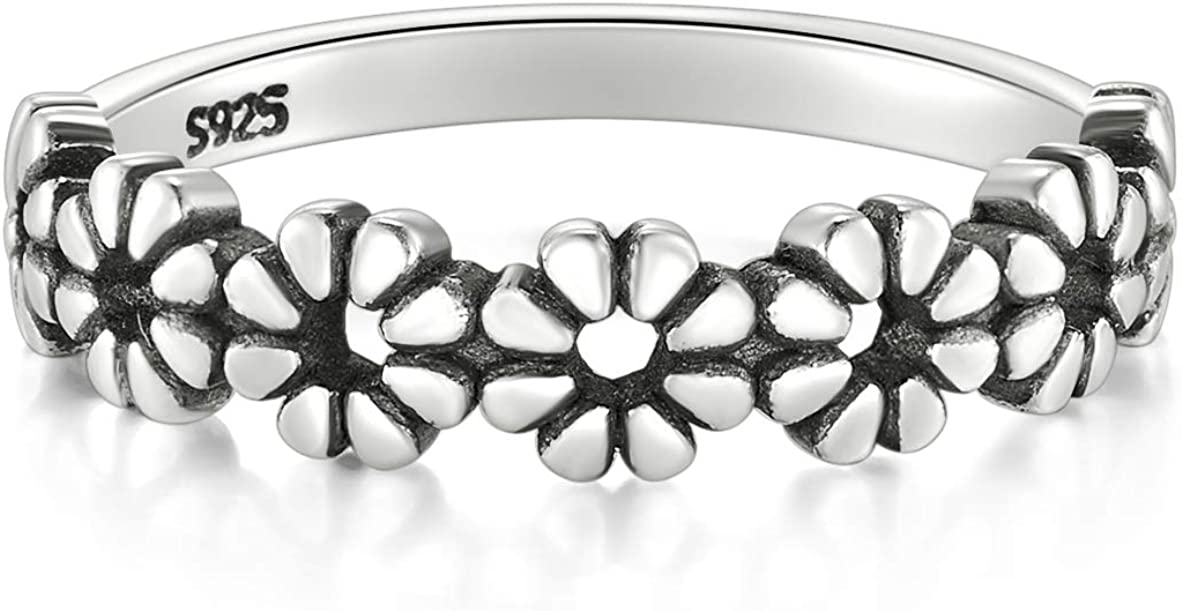 BORUO 925 Sterling Silver Ring, Daisy Flower Hawaiian High Polish Tarnish Resistant Comfort Fit Wedding Band Ring