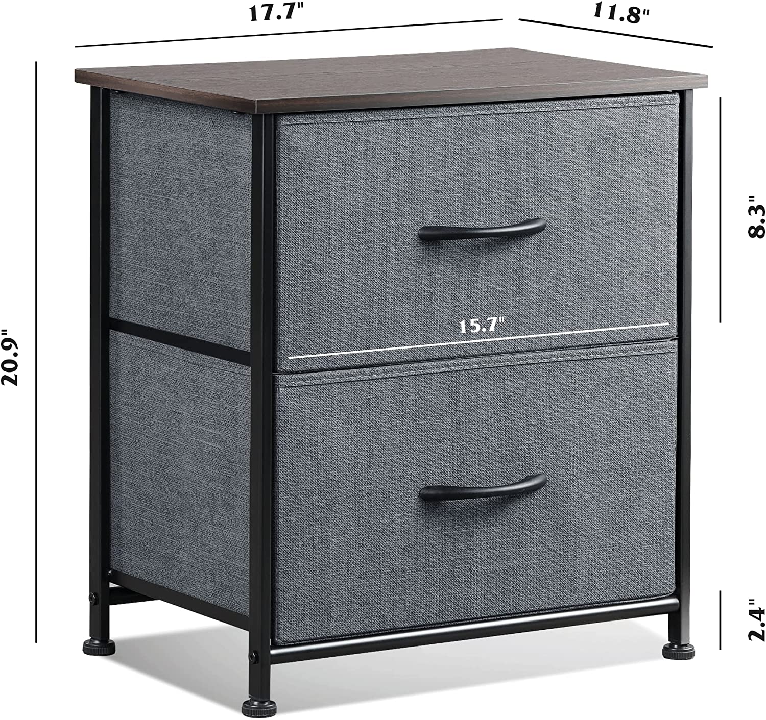 EASY ASSEMBLY: The bedside table can be assembled in 15 minutes with the instructions and tools included in the package. The overall dimensions of the 2 drawer dresser: 17.7" L x 11.8" W x 20.9" H.