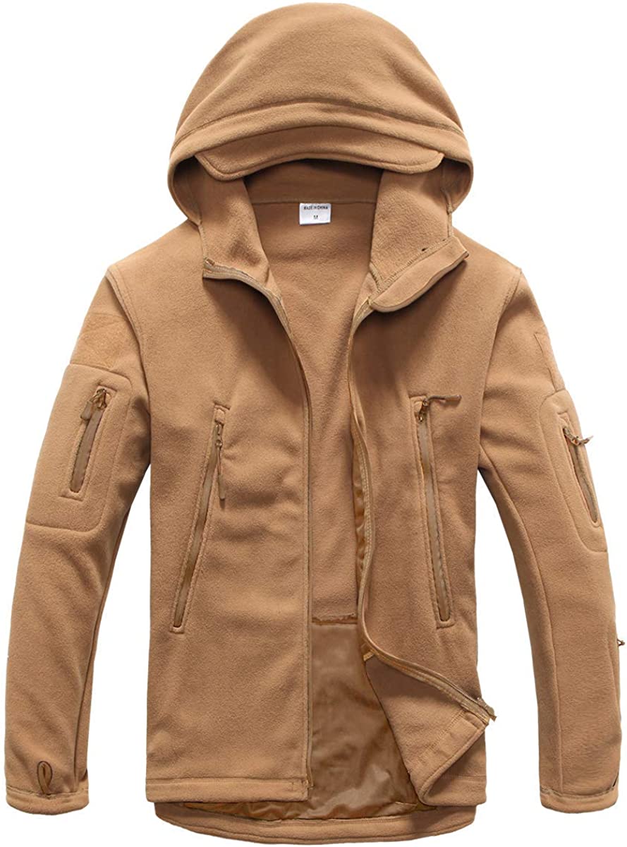 Warm Fleece: Men hooded tactical style jacket with ultra soft warm fleece