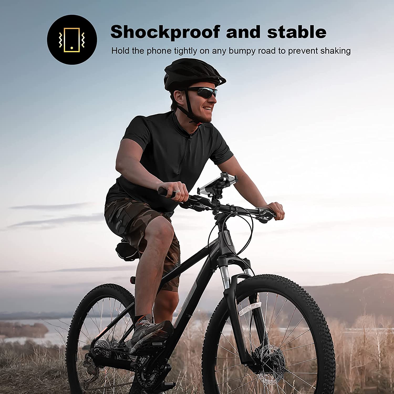 Rotation 360 Degrees: The phone holder and the handlebar connector are connected by a spherical universal joint, allowing you to adjust your phone to any angle you want!