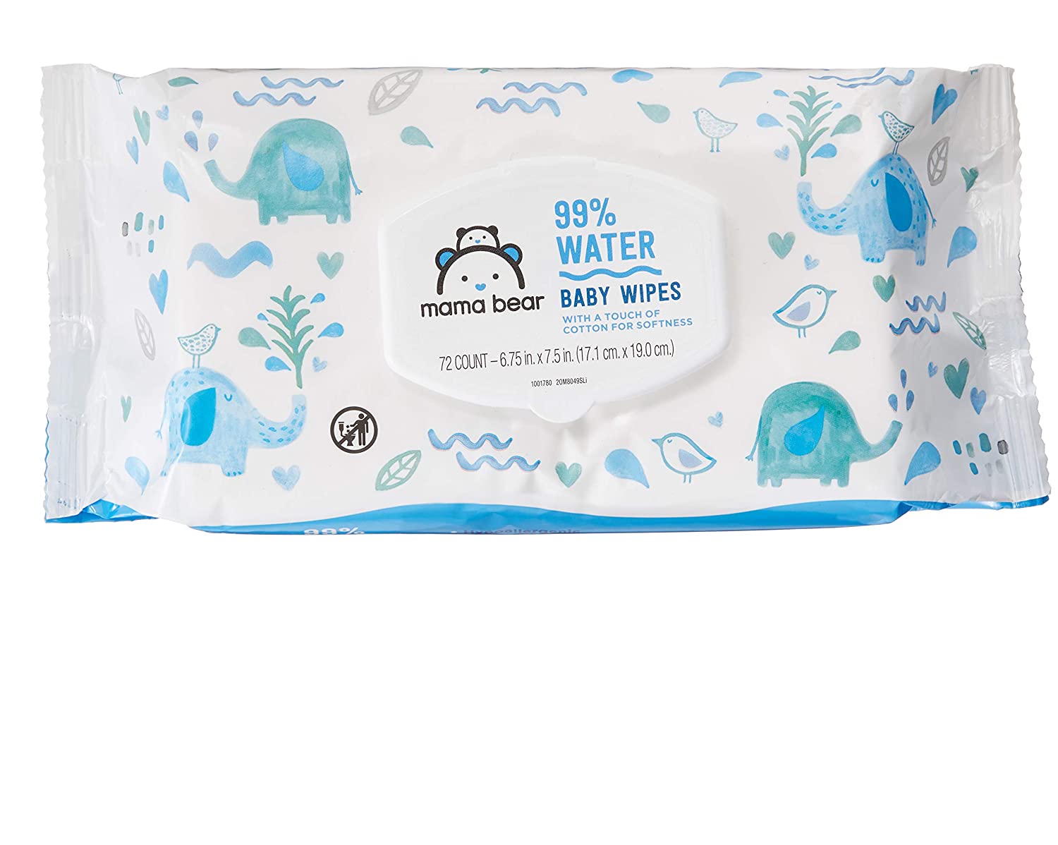 Amazon Brand - Mama Bear 99% Water Baby Wipes, Hypoallergenic, Fragrance Free,72 Count (Pack of 6)