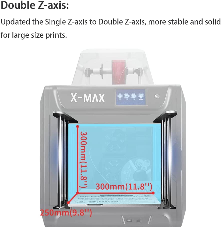 • 【High Precision and High Stability】 X Max Ⅱ innovatively adopts higher-cost industrial-grade dual Z-axis support and works in conjunction with two axes motors. Large-size 3D printers are more stable when printing larger models without jitter. Especially when the model is printed continuously for more than 24 hours, the accuracy remains stable. It is very suitable for engineering and mass production of professional quality printing.The large print size is 300x250x300mm.