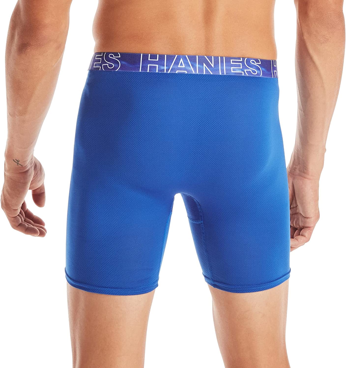 - COMFORT YOU DESERVE – A moisture-wicking waistband (with our modern graphic Hanes logo) helps your men's underwear boxer briefs flex and move with you. A no-ride-up design stays securely in place, so you don't have to keep adjusting
