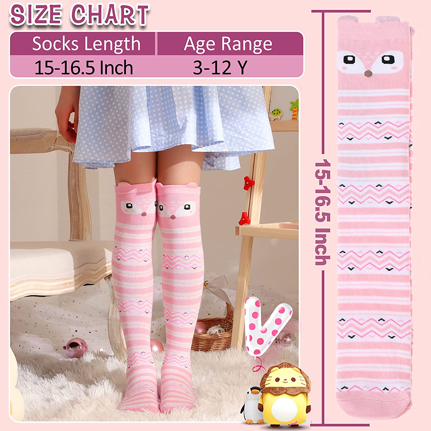 SIZE TIPS : These cartoon colorful tall socks for girls are approximately 15-16.5 Inch, suitable for most girls who are 3-12 years old. The knee high socks for girls are whether over calf or knee, depending on how long your girl's legs are.