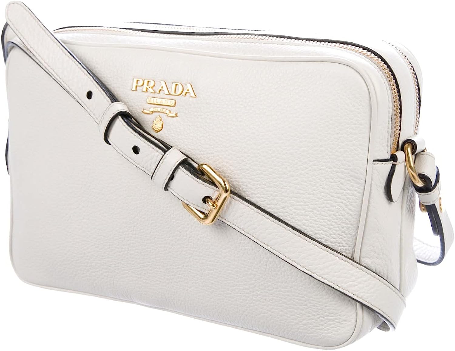 Prada Women's White Vitello Phenix Leather Crossbody HandBag 1BH079