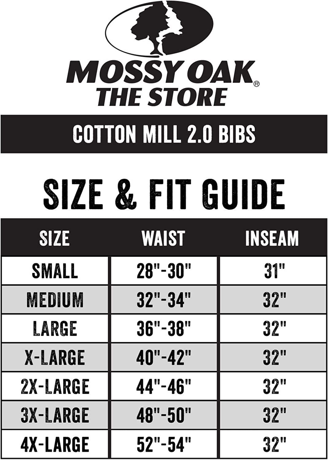 • VERSATILITY: The perfect hunting bib from spring turkey to fall archery. They are available in NEW Mossy Oak Country DNA, Bottomland, Obsession, Mountain Country, Vintage Greenleaf, Original Bottomland, and Original Treestand camo patterns.