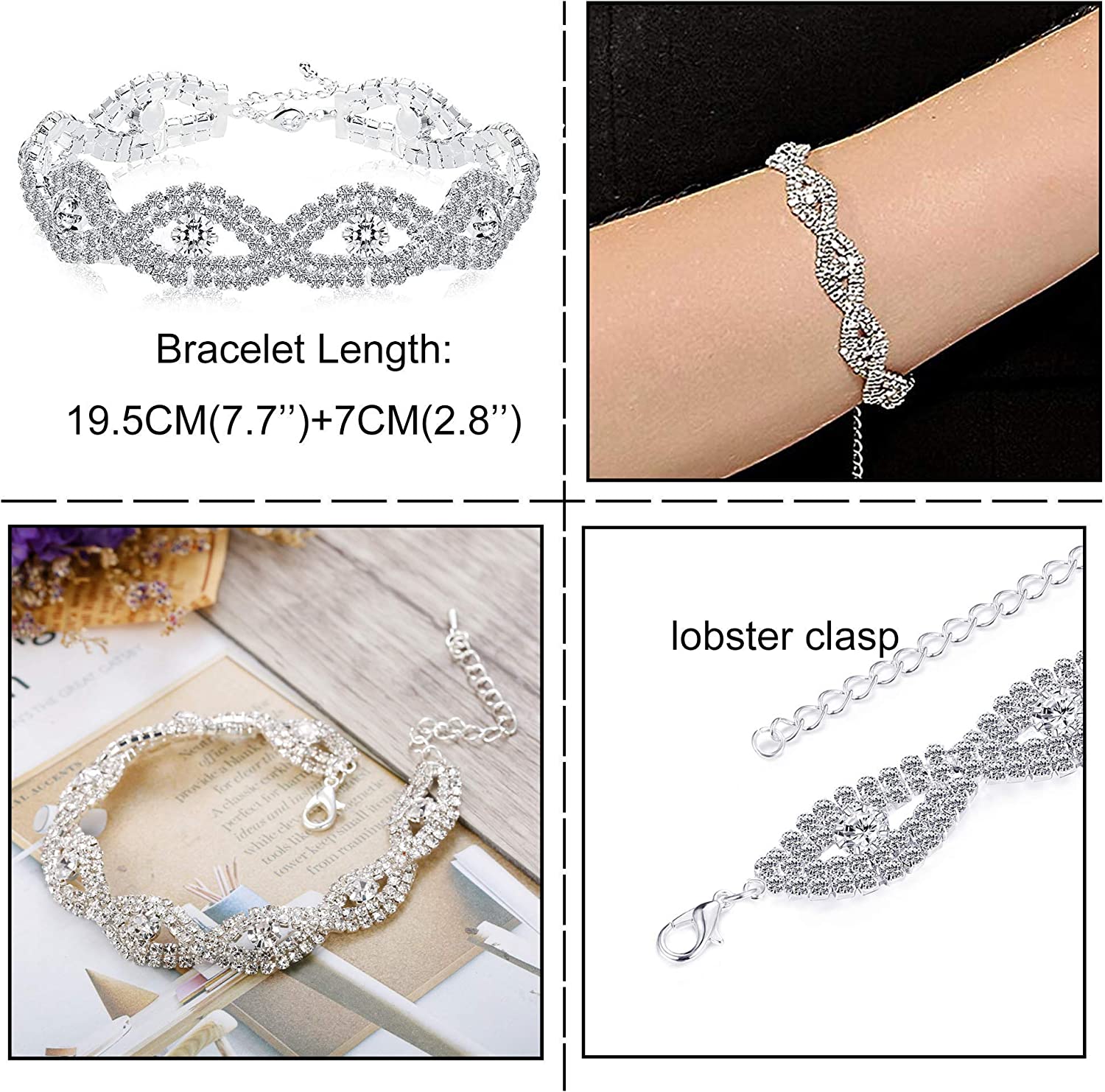 RHINESTONE JEWELRY SIZE-- Crystal Necklace Adjustable Chain Length 39cm (15.35’’)- 45cm (17.72’’), Bridal Drop Earrings Length: 5cm(2’’). Teardrop Bracelet Length: 19.5cm(7.7’’), With 7cm (2.8’’) Extension Chain, Easy To Adjust, No Worry About Size Problem.