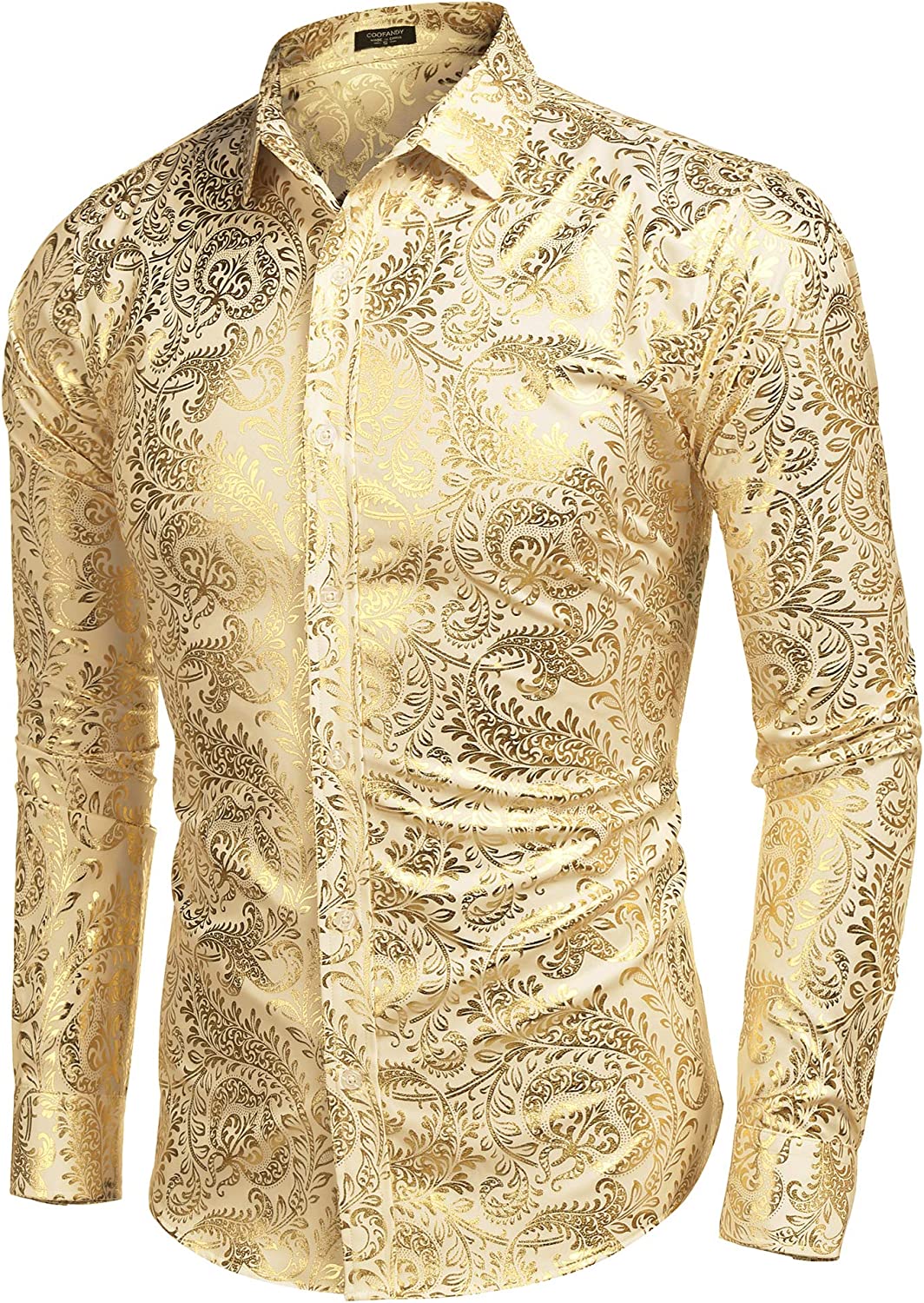 - Elegant Gold Floral Printed Dress Shirts: Crafted from hand selected material, this long sleeve shirt has been elaborately tailored for a comfortable regular fit. Clean and understated designs give an instant touch of effortless cool.