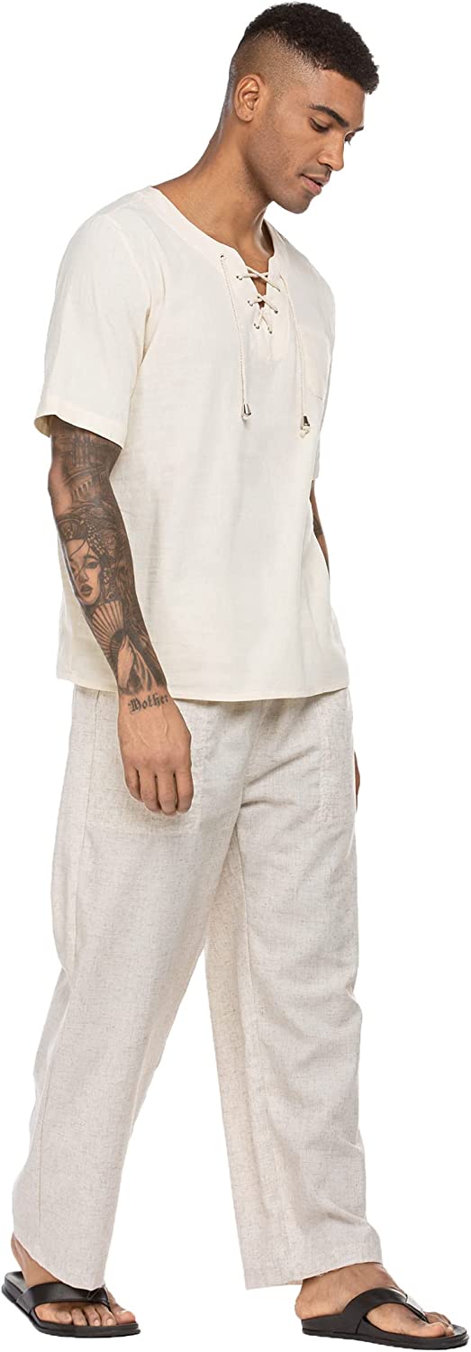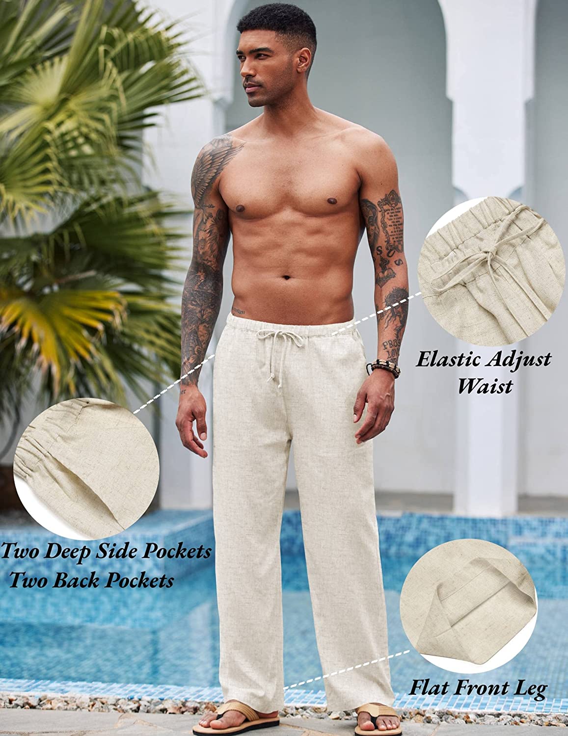 COOFANDY Mens Loose Fit Linen Beach Pants For Summer