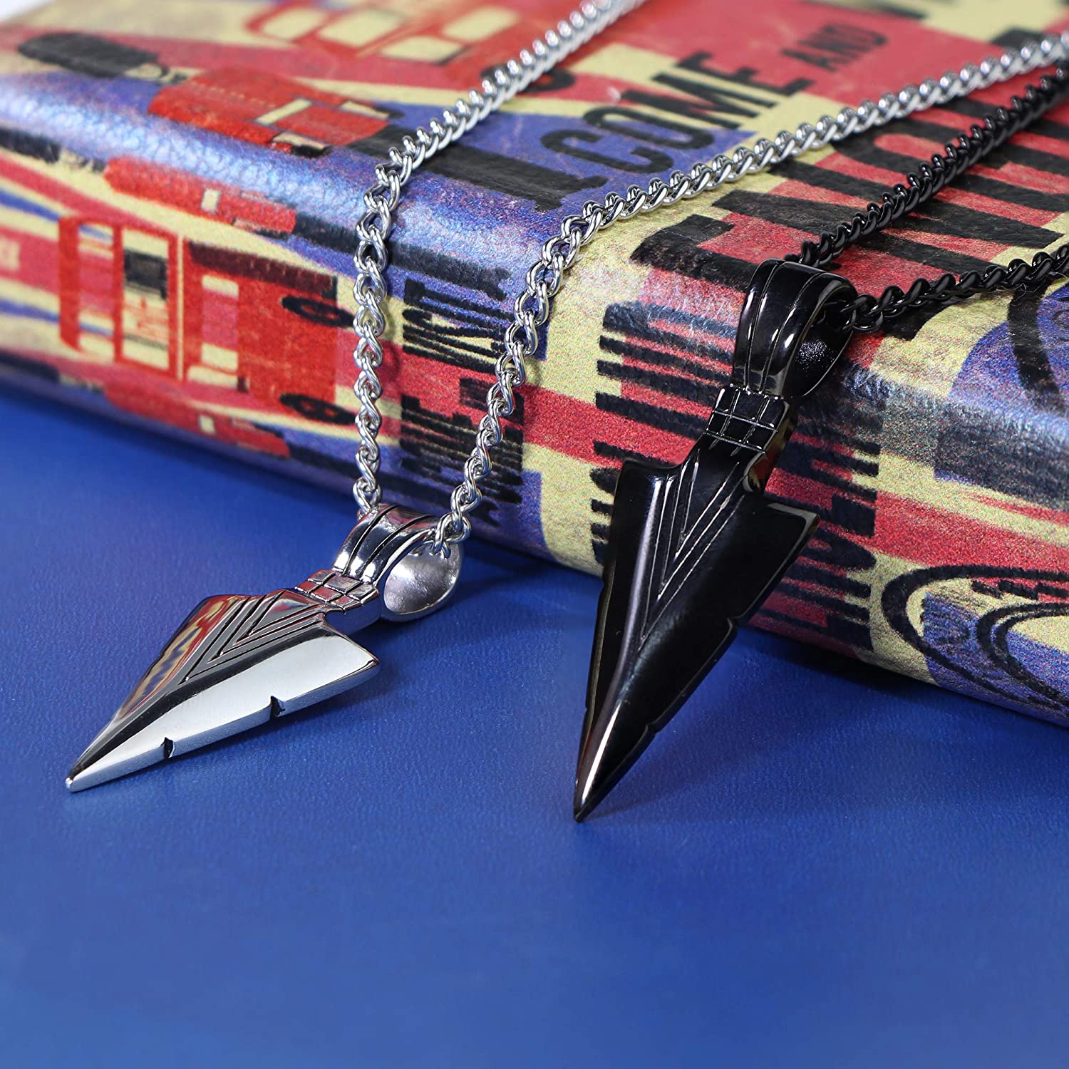 • VALUE NECKLACE SET-- There Are 2Pcs Pendant Necklace In One Order, Silver Tone Arrow Pendant with Shiny Steel Natura Color & Black Tone Arrow with Finest Black Color Plating Curb Chain, Classic Colors Matching Design, Cool Necklace Jewelry for Mens; Quality Lobster-claw Clasp That Easy To Wear.