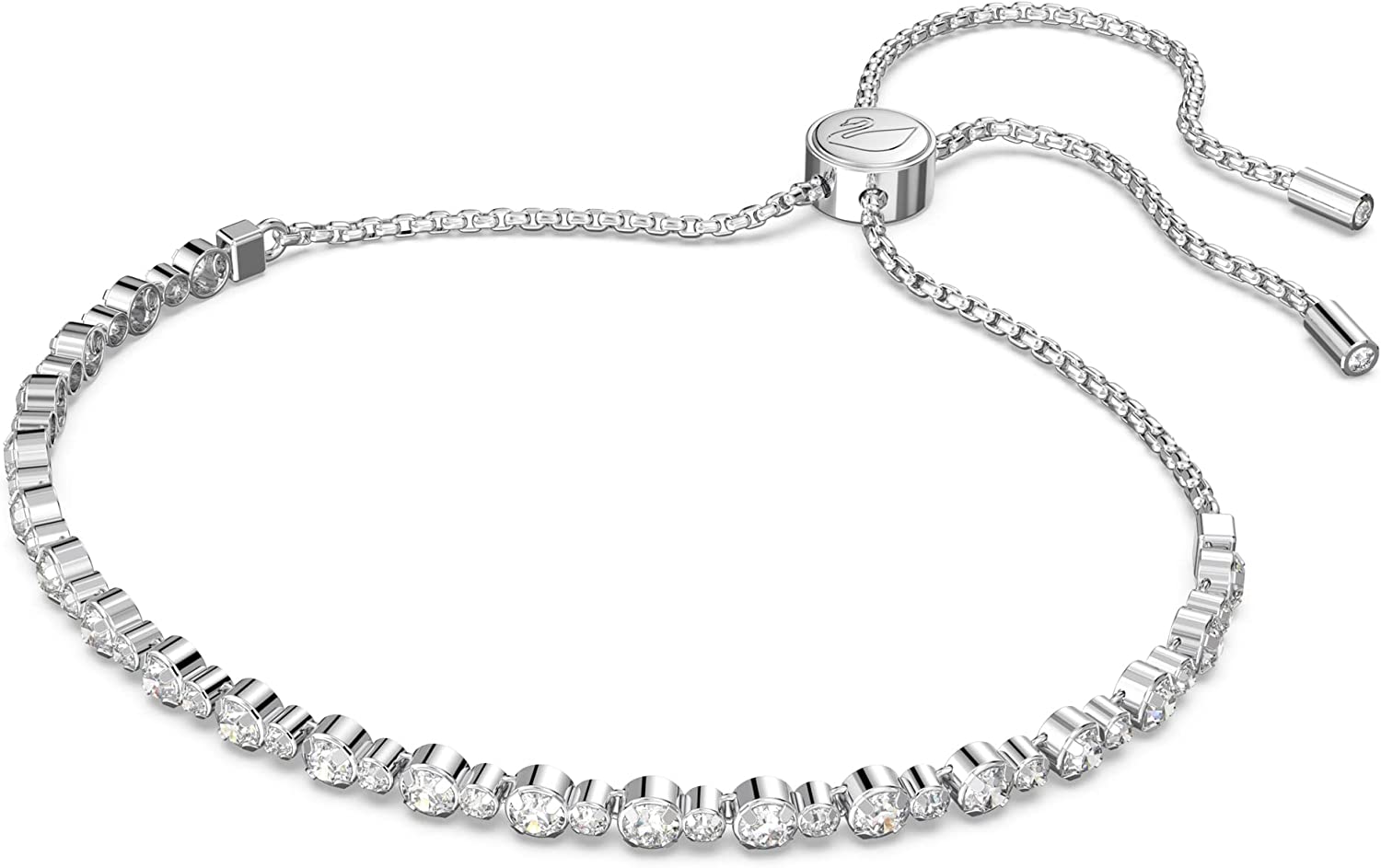 Items delivered: 1 x Swarovski Subtle collection bracelet for women, with adjustable rhodium plated chain, clear Swarovski crystals and bolo closure, complete with Swarovski bracelet box