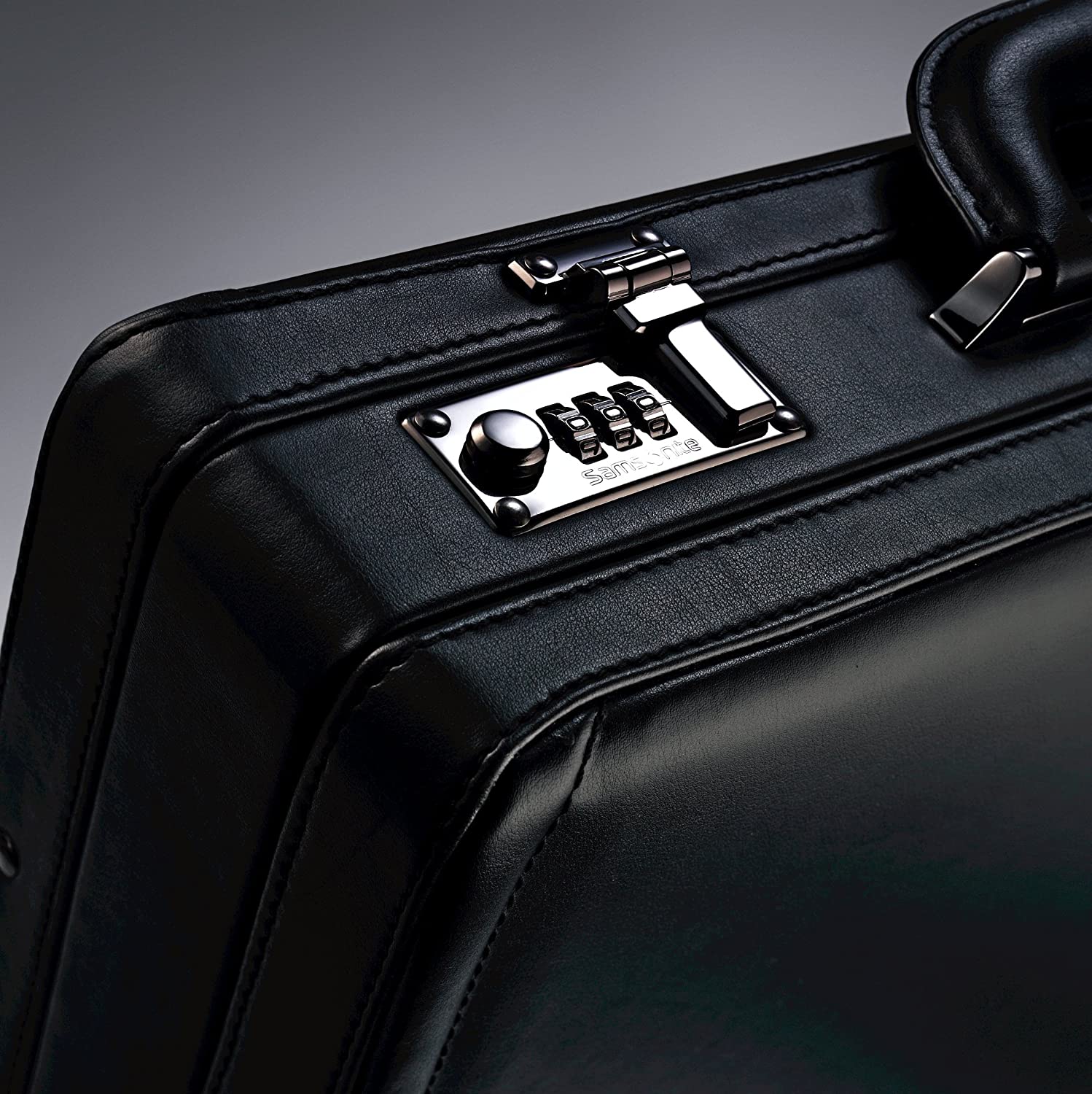 Samsonite Carrying Case (Attached) for Document - Black - Leather. Body dimension: 17.875 x 13 x 4.25 inches, Overall Dimension: 17.87 x 14.25 x 4.25 inches.