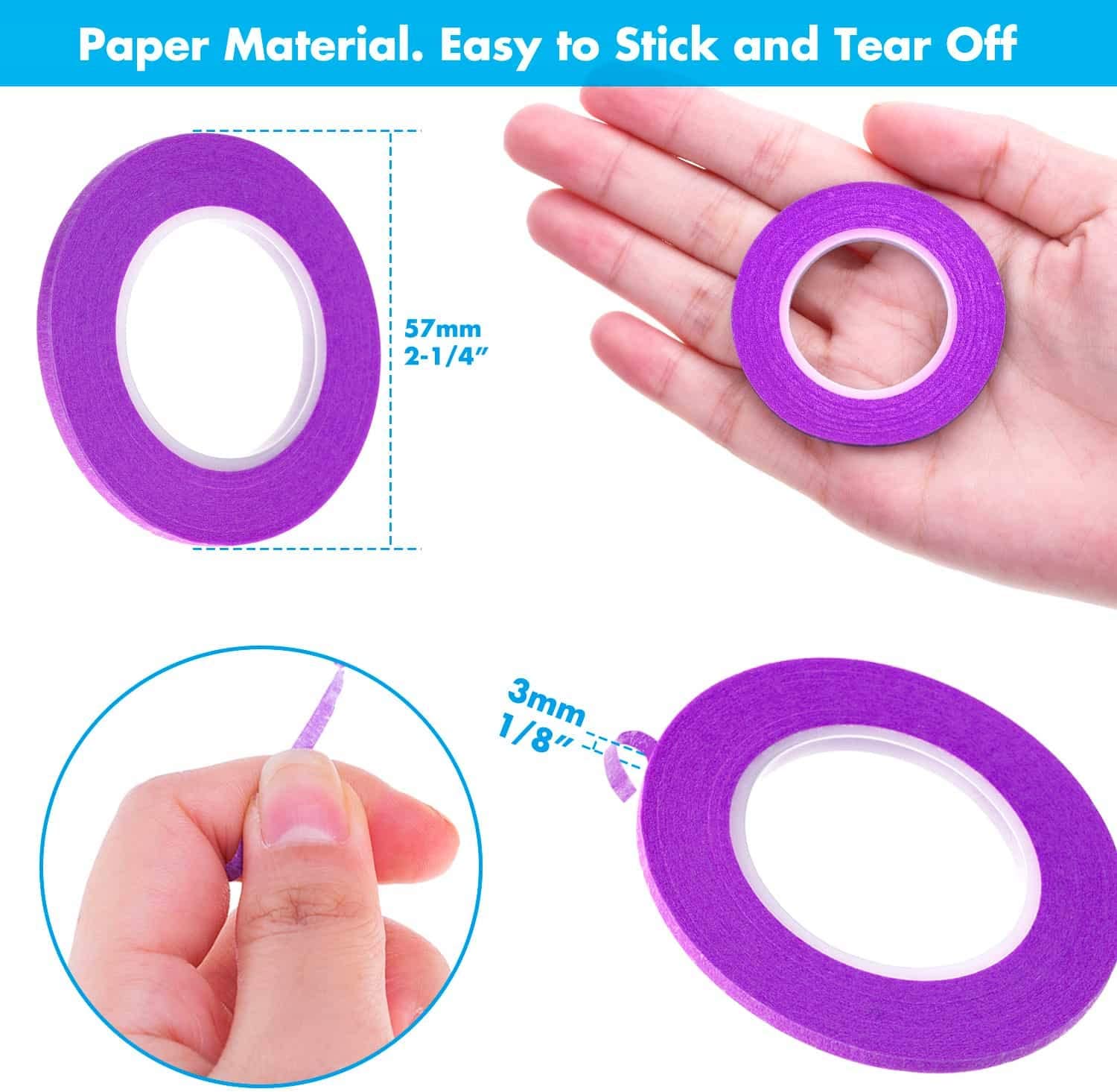 - What’s the Tape Size: The roll size is about 2-1/4 inches and the tape width is 1/8 inches. Thin size is perfect for trim work, create grid lines on a whiteboard