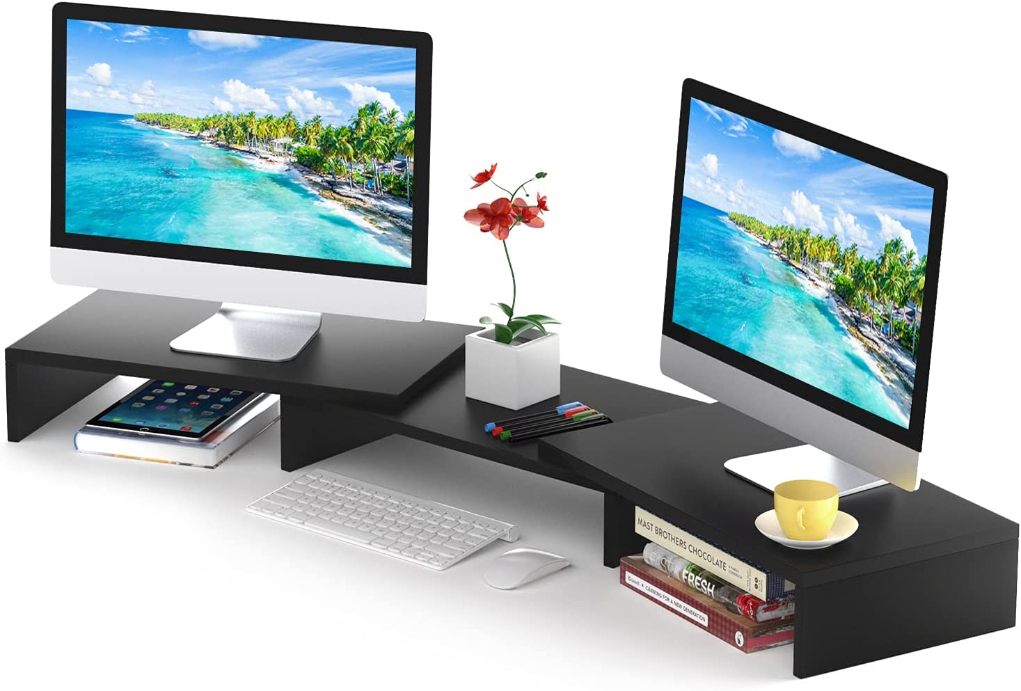 5Rcom Dual Monitor Stand, Desk Accessories with Adjustable Length and Angle, Computer Monitor Stand for PC, Tablet, Laptop, Printer, Monitor Stand Riser, Desk Shelf (Black)