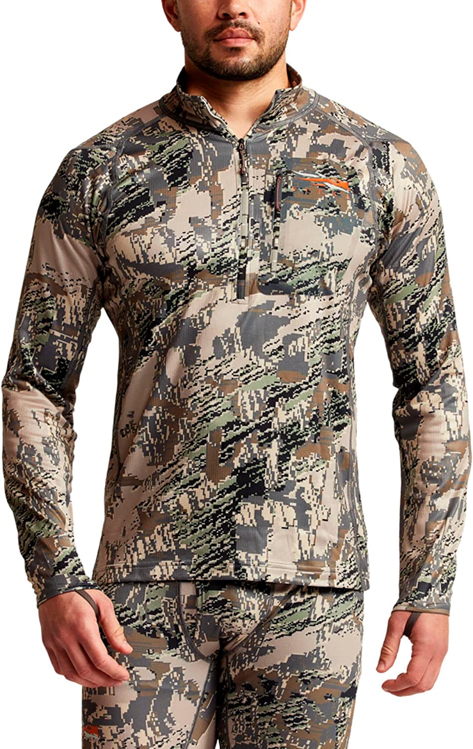 MIDWEIGHT FLEECE – Sitka's hunting camouflage Zip-T features quick-drying comfort stretch mid-weight fleece and a high-zippered neck to keep your active body temperature regulated as the thermometer rises or plummets.