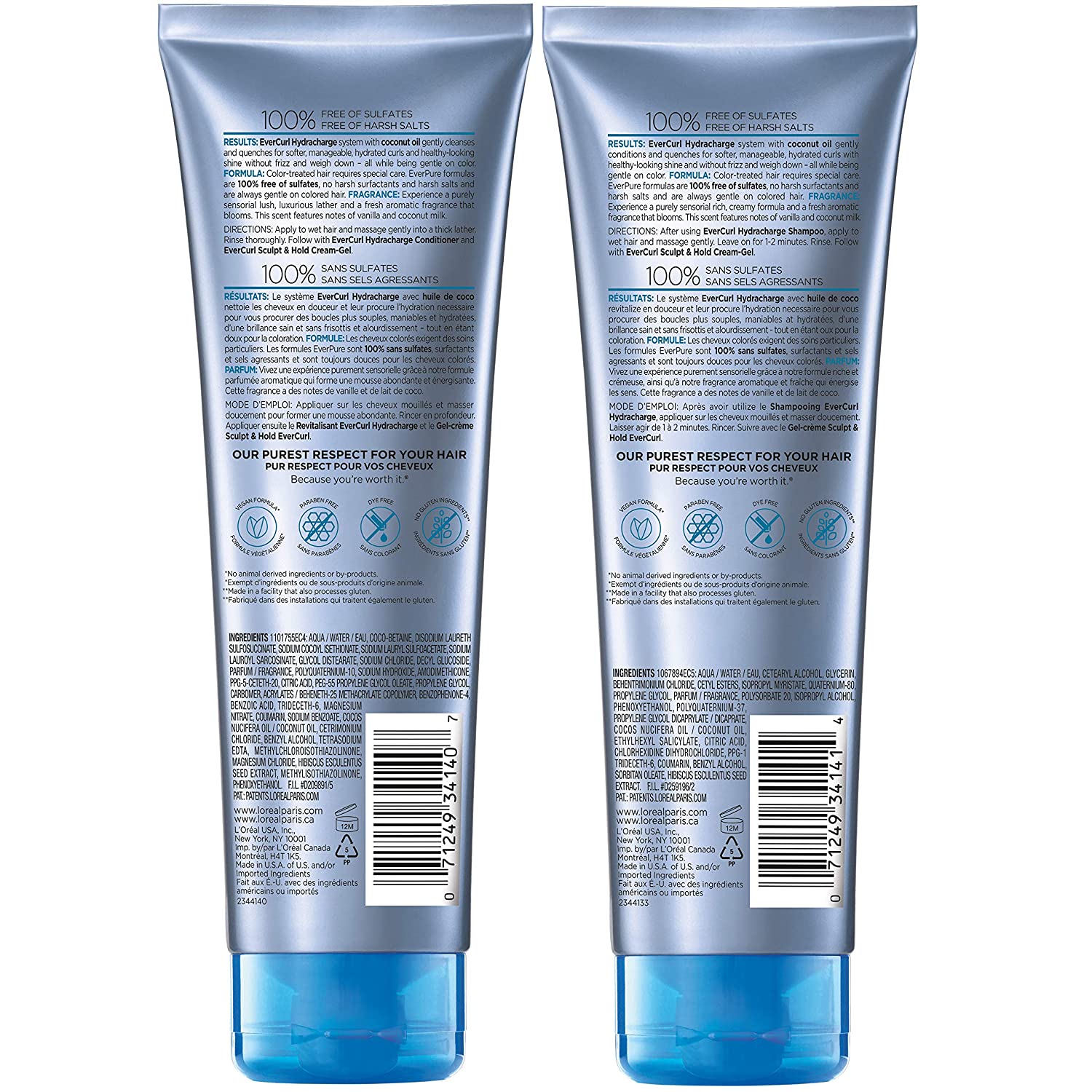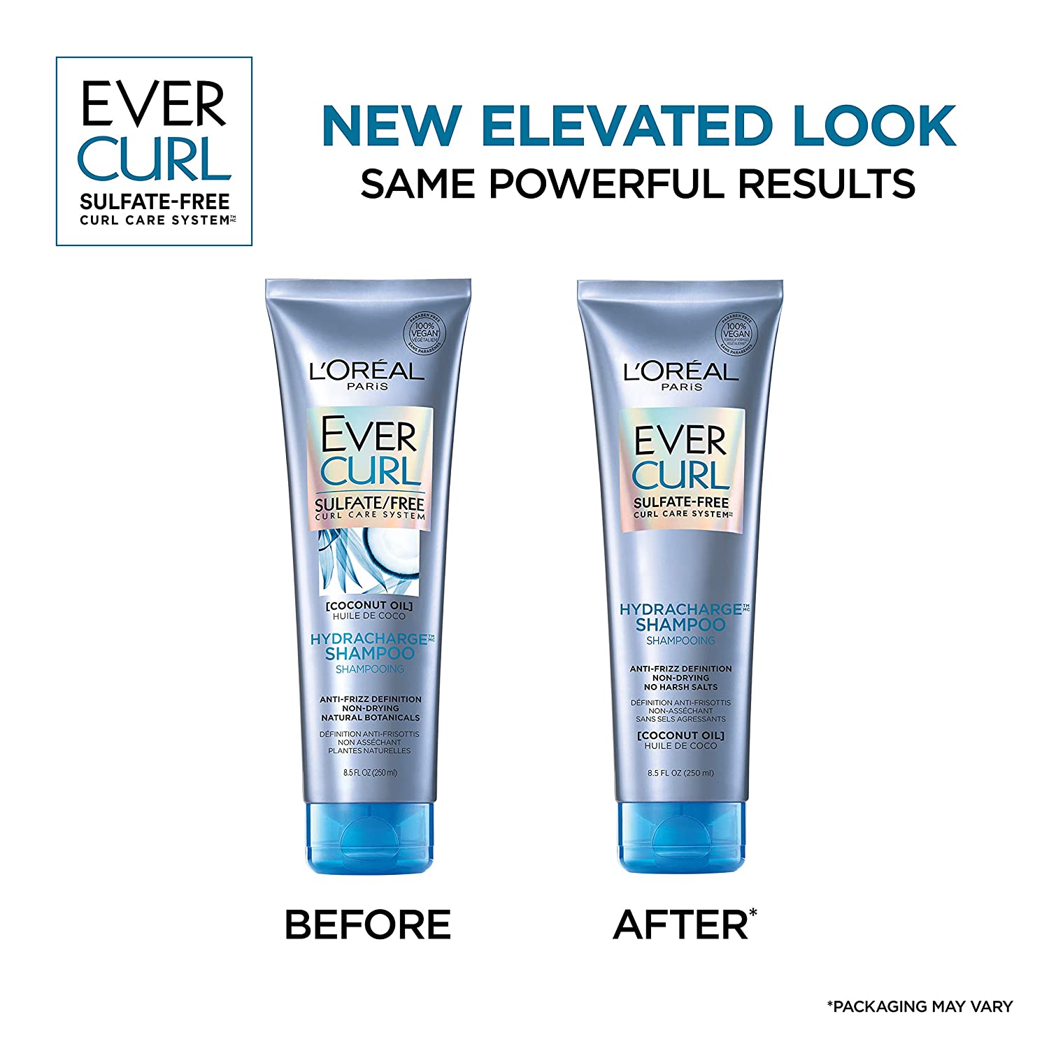 L'Oreal Paris EverCurl sulfate free shampoo and conditioner are anti-frizz, hydrates, and smooths curly hair. Coconut oil helps control frizz and weigh down for 48-hour curl definition. Our formulas are especially gentle on curls and color treated hair. There are no harsh sulfates, salts or surfactants that can strip, dull and damage hair like other curly hair products. Experience a purely sensorial lush, luxurious lather and a fresh aromatic fragrance that blooms. system of shampoo, conditioner, and treatment. Packaging may vary, what you receive may not be what is reflected on site.