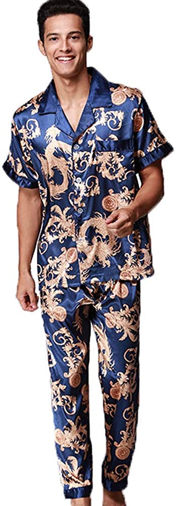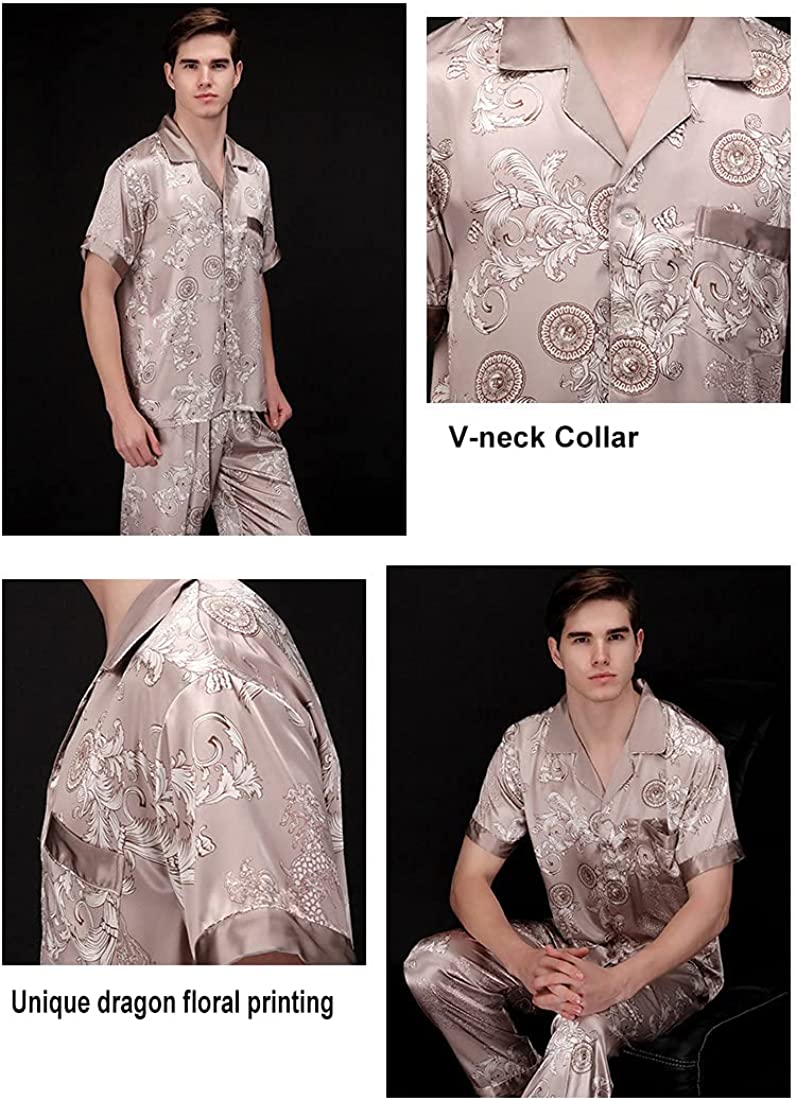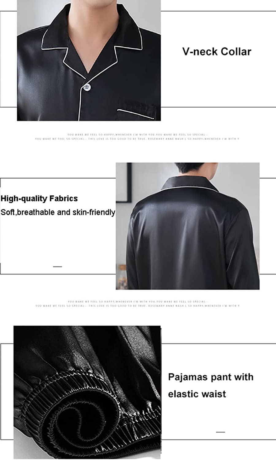 Gift:The satin pj set is a perfect gift choice for your dad, husband, son, or friend on birthday,Christmas Day,New Year,Valentine's Day. Fit for SleepWear,pajama party,fathers day,indoor, living room, bedroom, hotel, vocation, travel, and daily sleepwear.