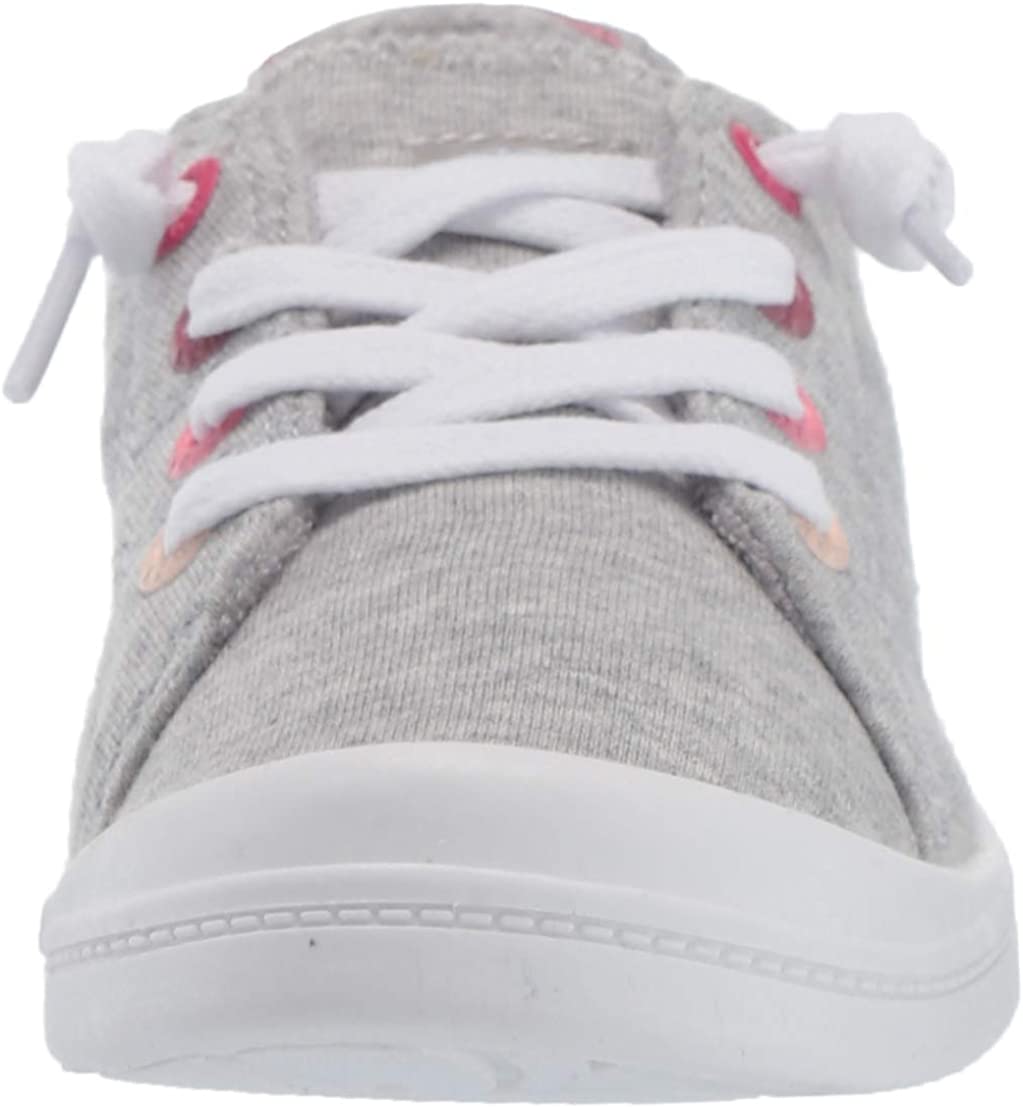 Textile upper sneaker with printed heel and lace up detail, memory foam padded insole with graphic print, and flexible tpr injected outsole with molded arch detail.