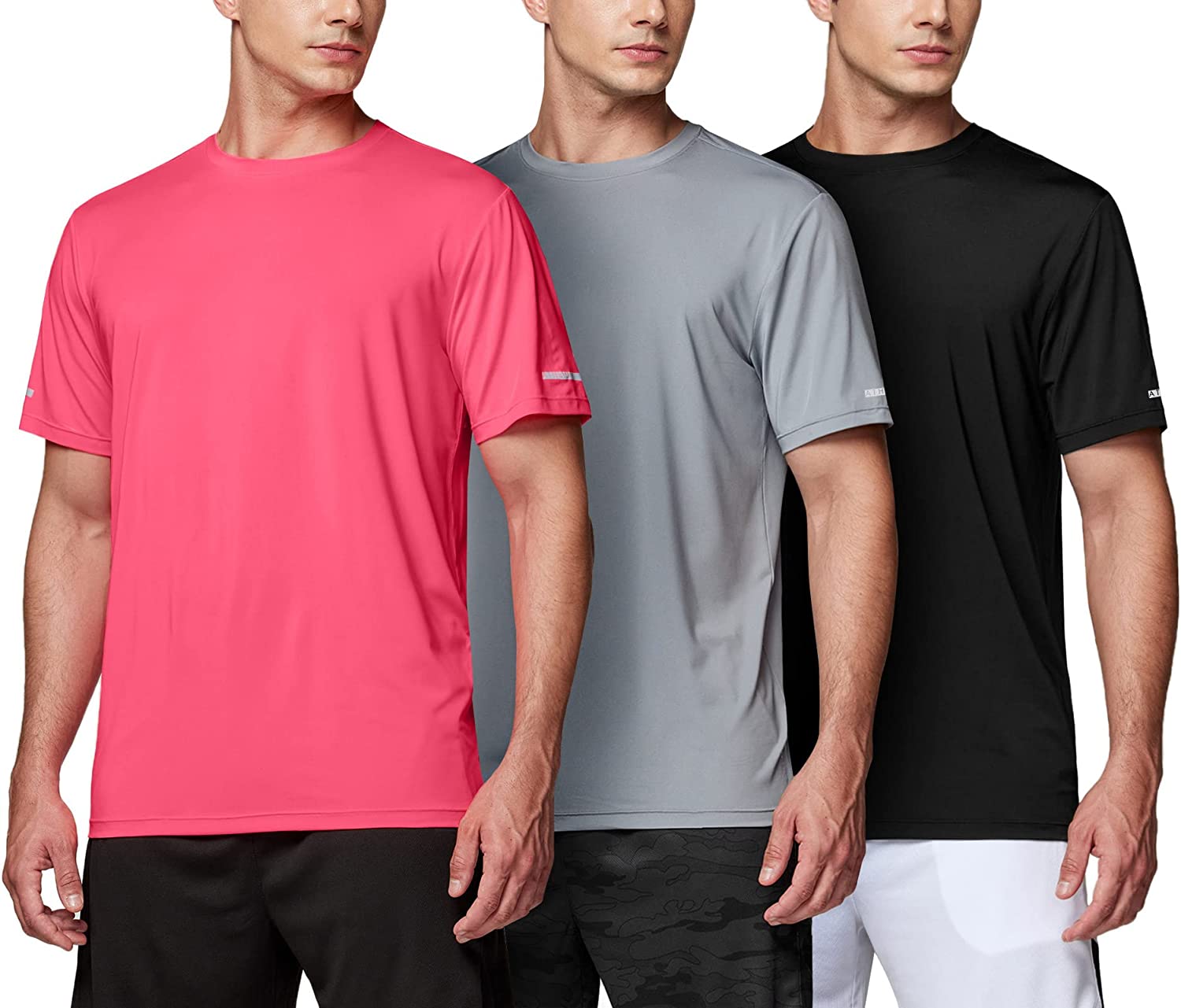ATHLIO 2 or 3 Pack Men's Workout Running Shirts, Sun Protection Quick Dry Athletic Shirts, Short Sleeve Gym T-Shirts