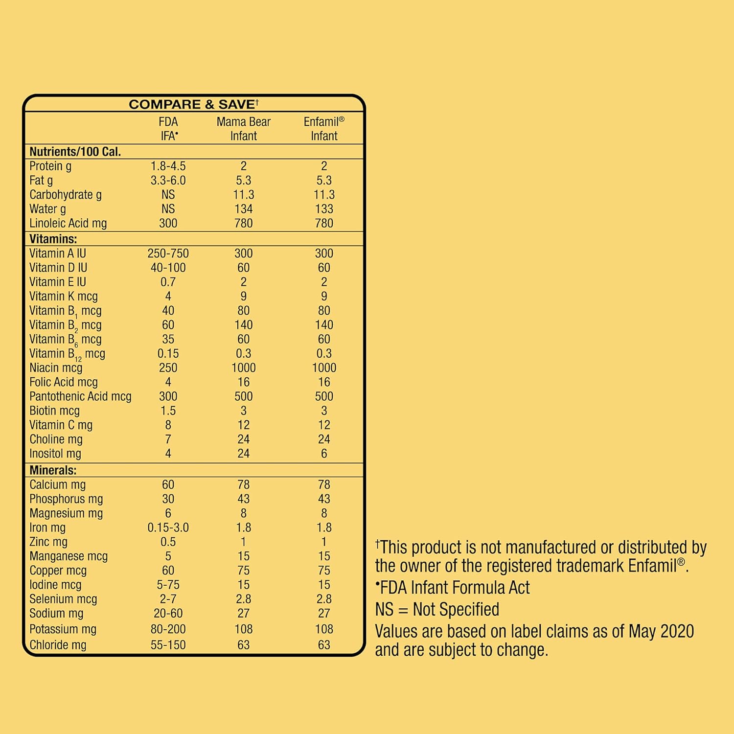 FDA REQUIREMENTS: Like all baby formulas sold in the U.S., Mama Bear Infant baby formula powder meets U.S. FDA requirements, same as the national brand