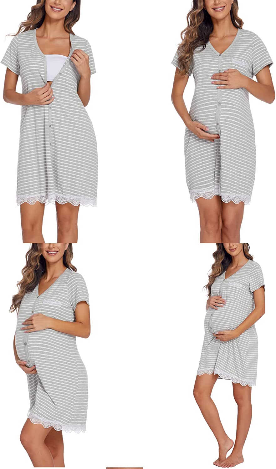 V-neck Button Down Nightshirt, Short Sleeve Lace hem Sleep Shirt/ Long Pajama Top, front single pocket Nightgown perfect for sleep and loungewear, or take a free walk in the park with leggings.
